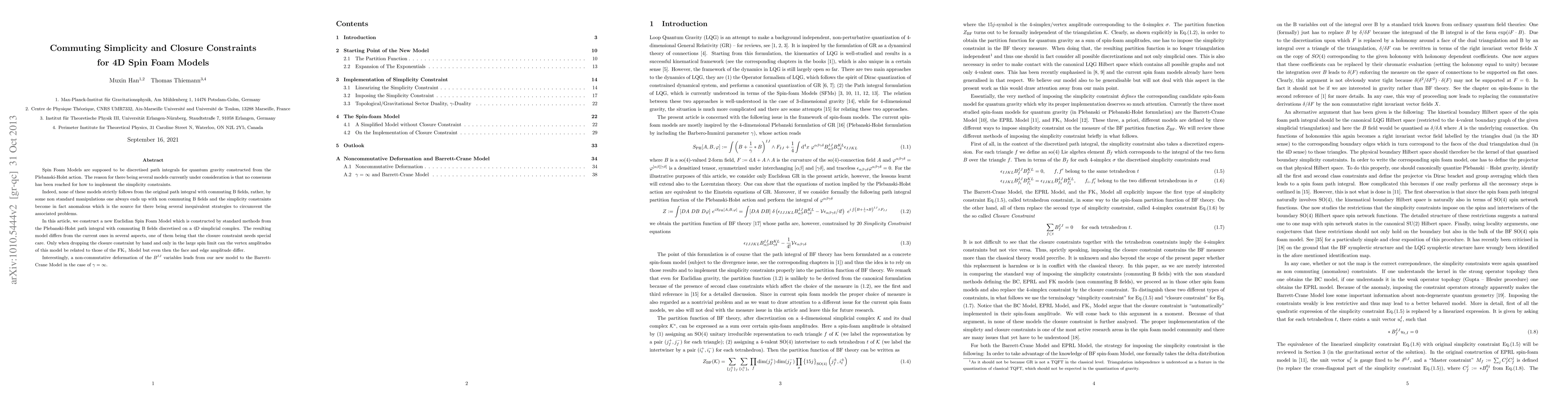 This paper introduces a new Euclidean Spin Foam Model derived from the Plebanski-Holst action with commuting B fields on a 4D simplicial complex. Unlike existing models, it requires special handling of the closure constraint and shows differences in vertex amplitudes compared to the FK Model, even with ad hoc non-commutative deformations.