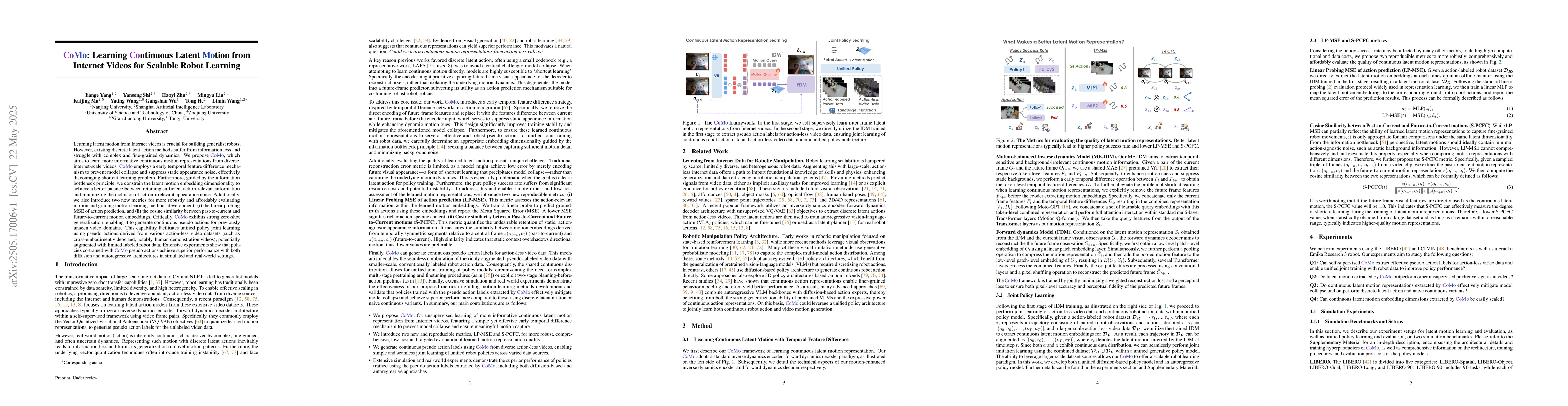 This research paper introduces CoMo, a method for learning continuous latent motion from internet videos that enables robots to generalize across different domains with zero-shot performance.