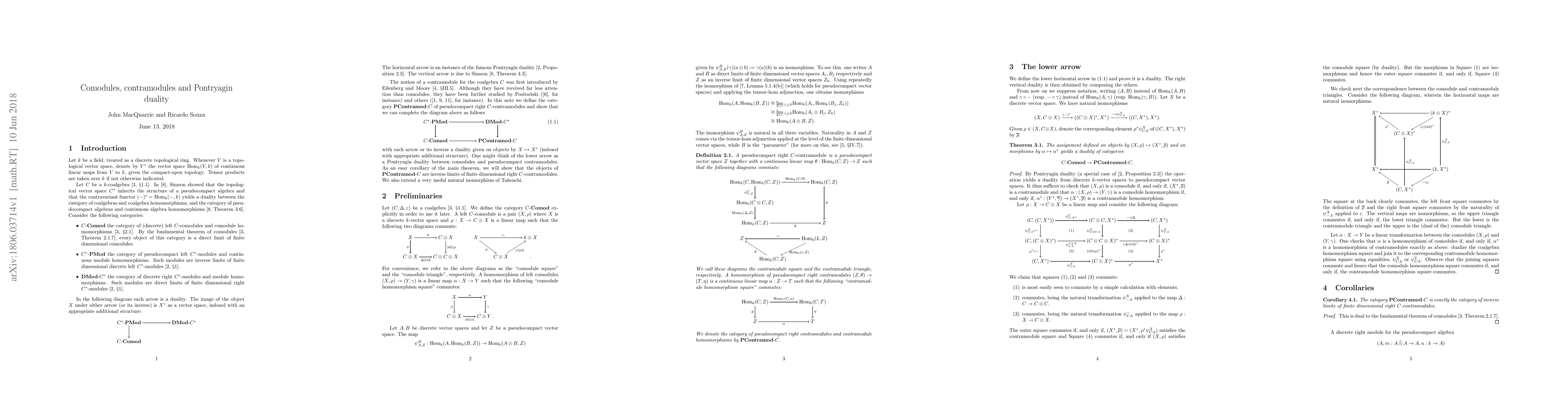 Let $C$ be a $k$-coalgebra, where $k$ is a field. The category of pseudocompact left $C^*$-modules is dual to both the category of discrete right $C^*$-modules and to the category of left $C$-comodules. We obtain this way two sides of a square of dualities. In this note we complete the square by introducing as fourth corner the category of pseudocompact right $C$-contramodules. We use these dualities to extend a natural isomorphism of Takeuchi.