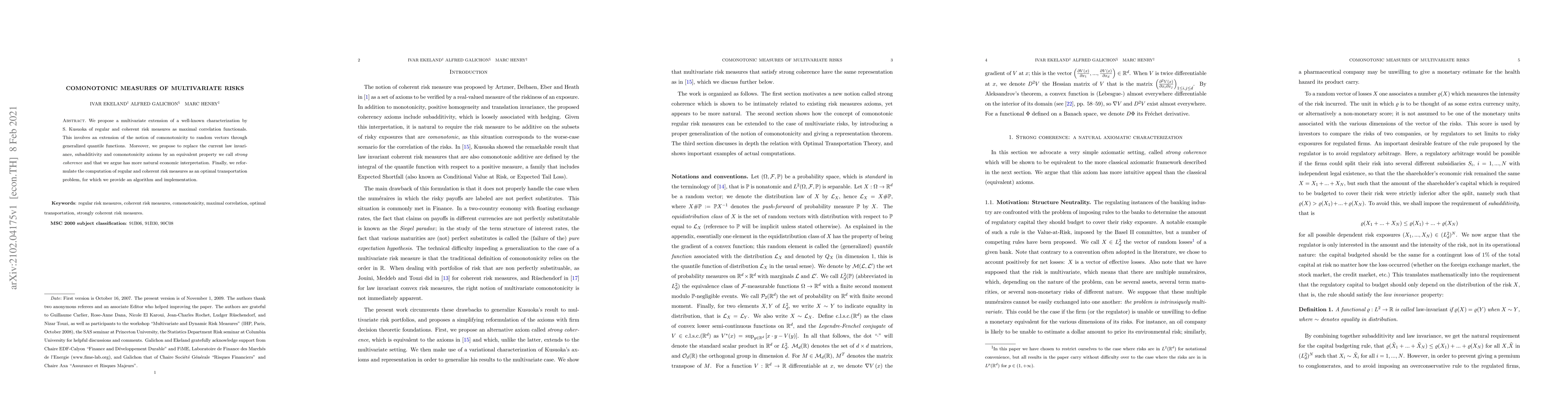 This paper proposes a multivariate extension of risk measure characterization using comonotonicity and strong coherence axioms, reformulating computation as an optimal transportation problem.