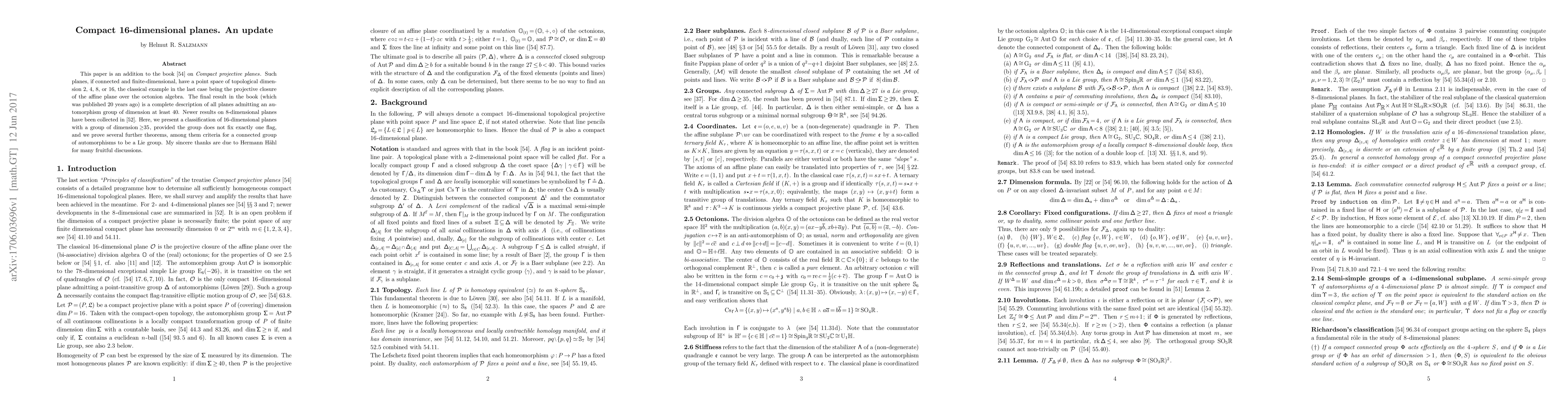 This paper updates the classification of compact projective planes, specifically focusing on 16-dimensional ones. It presents a new classification of such planes with automorphism groups of dimension at least 35, excluding those fixing exactly one flag. The paper also includes criteria for connected automorphism groups to be Lie groups, building upon previous work from 20 years ago and more recent findings on 8-dimensional planes.