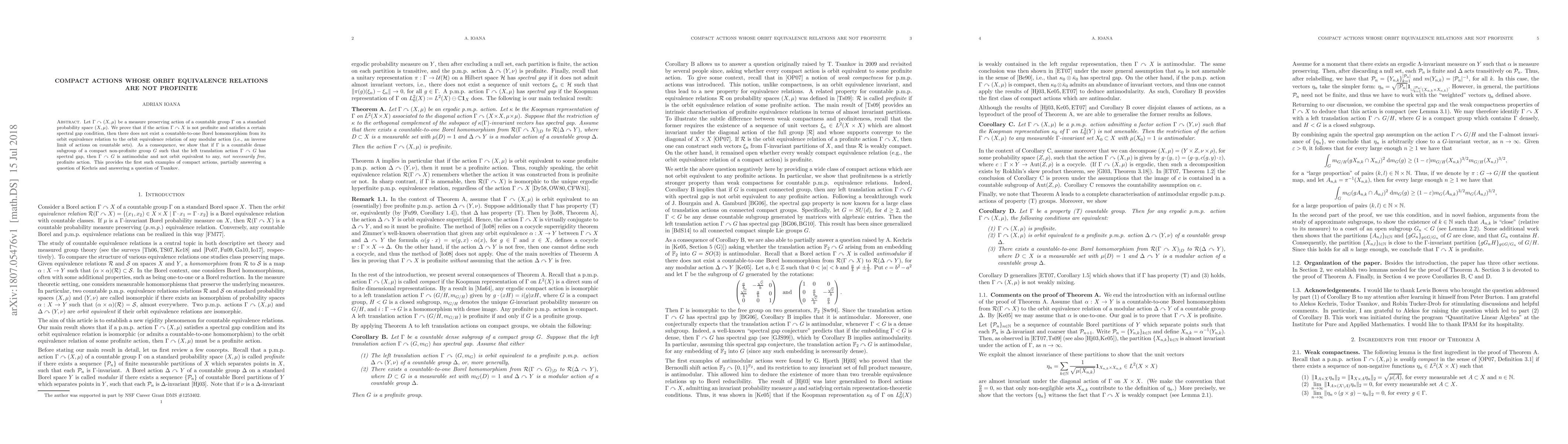 Let $\Gamma\curvearrowright (X,\mu)$ be a measure preserving action of a countable group $\Gamma$ on a standard probability space $(X,\mu)$. We prove that if the action $\Gamma\curvearrowright X$ is not profinite and satisfies a certain spectral gap condition, then there does not exist a countable-to-one Borel homomorphism from its orbit equivalence relation to the orbit equivalence relation of any modular action (i.e., an inverse limit of actions on countable sets). As a consequence, we show that if $\Gamma$ is a countable dense subgroup of a compact non-profinite group $G$ such that the left translation action $\Gamma\curvearrowright G$ has spectral gap, then $\Gamma\curvearrowright G$ is antimodular and not orbit equivalent to any, {\it not necessarily free}, profinite action. This provides the first such examples of compact actions, partially answering a question of Kechris and answering a question of Tsankov.