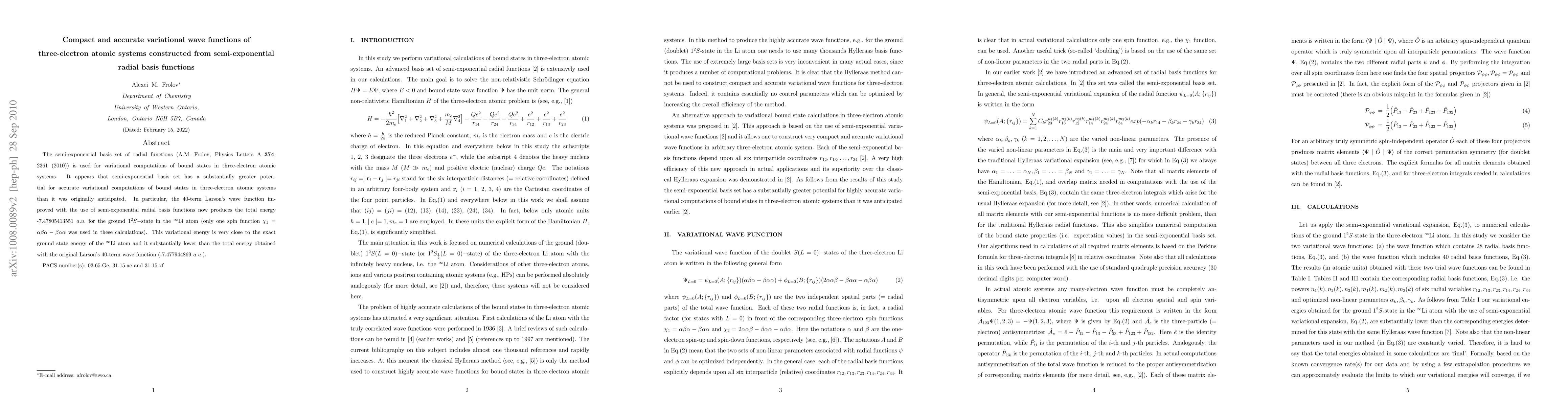 This paper utilizes semi-exponential radial basis functions to construct variational wave functions for three-electron atomic systems, demonstrating significant improvement over previous methods. The optimized 40-term Larson's wave function yields a total energy of -7.47805413551 a.u. for the ground state of the infinite lithium atom, closely approximating the exact energy and surpassing the original Larson's wave function.