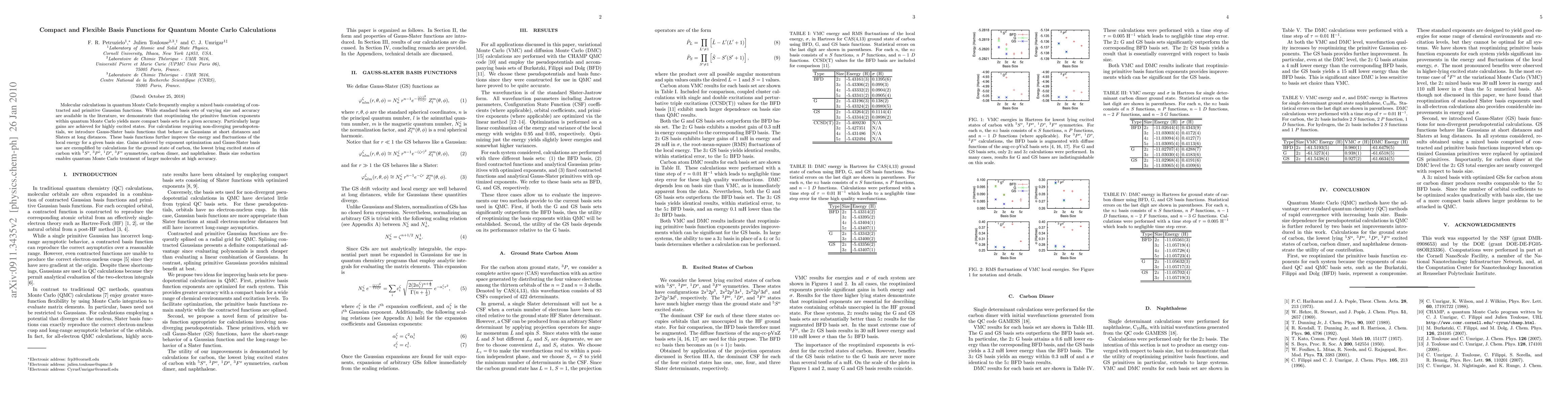 This paper presents optimized Gaussian and Gauss-Slater basis functions for quantum Monte Carlo calculations, achieving more compact basis sets and improved accuracy, especially for excited states. The new basis functions enable high-accuracy quantum Monte Carlo simulations for larger molecules.