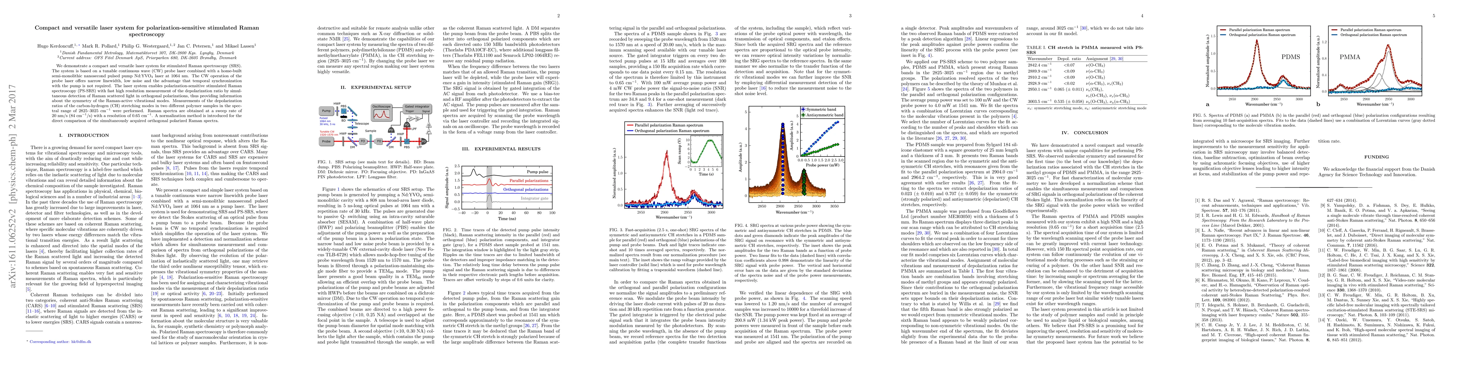 This paper presents a compact laser system for polarization-sensitive stimulated Raman spectroscopy (PS-SRS) using a tunable continuous wave probe laser and a nanosecond pulsed Nd:YVO4 pump laser. The system enables high-resolution, fast measurements of depolarization ratios, providing insights into the symmetry of Raman-active vibrational modes.