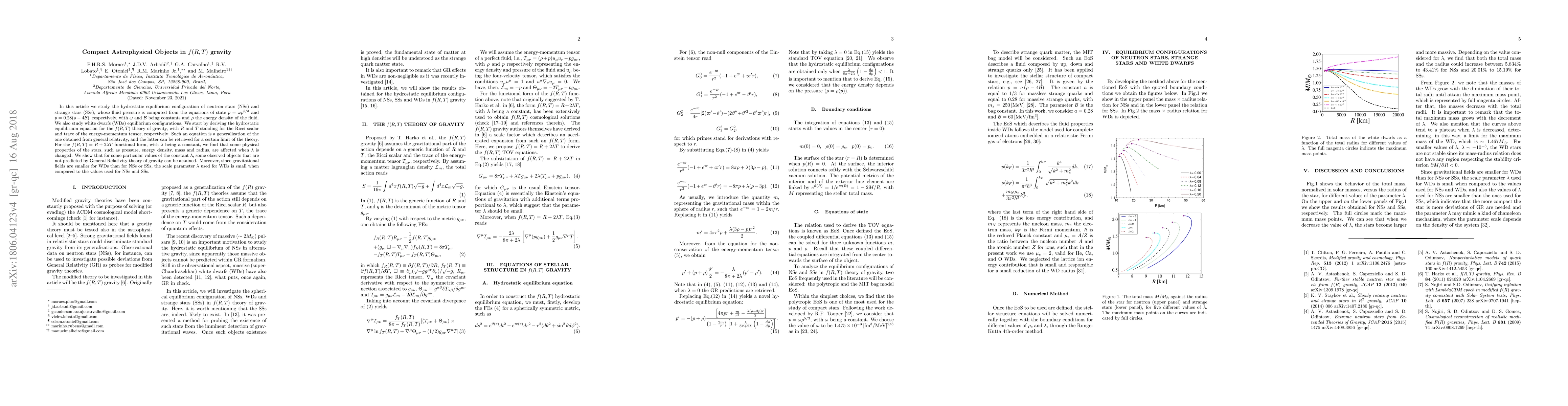 This research explores the impact of $f(R,T)$ gravity on neutron stars, strange stars, and white dwarfs. It derives a generalized hydrostatic equilibrium equation and finds that specific $lambda$ values can explain observed objects not predicted by General Relativity. Gravitational field strength differences lead to distinct $lambda$ scales for white dwarfs compared to neutron and strange stars.
