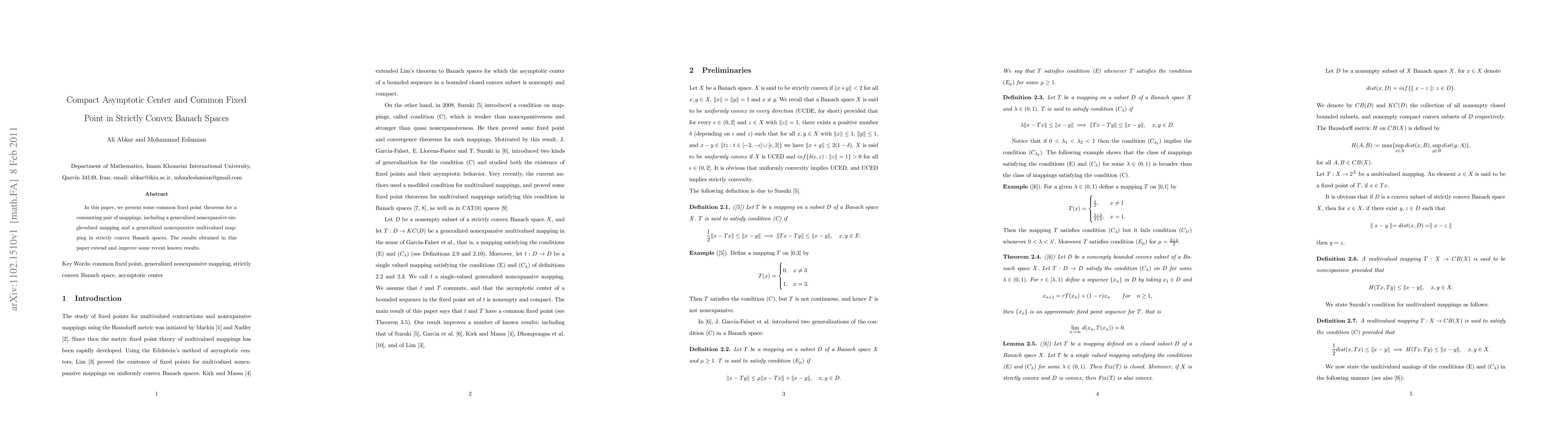 Summary: This paper establishes common fixed point theorems for commuting pairs of mappings in strictly convex Banach spaces, extending and improving upon recent results involving generalized nonexpansive mappings.
