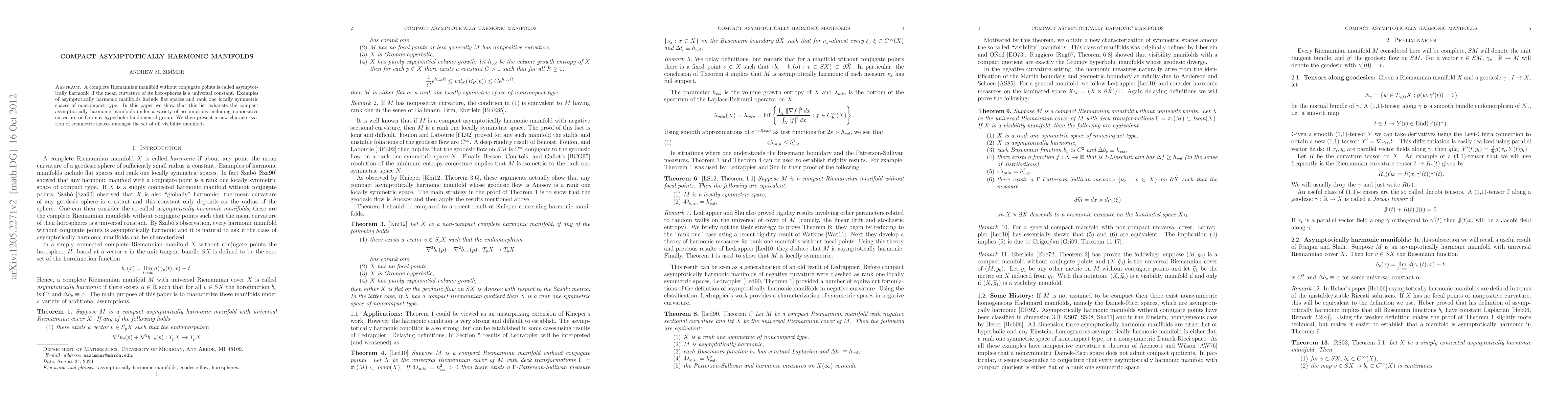 The work introduces a novel characterization of symmetric spaces within the broader category of visibility manifolds and extends previous results by connecting asymptotic harmonic properties to dynamical systems theory, specifically through the Anosov nature of geodesic flows.