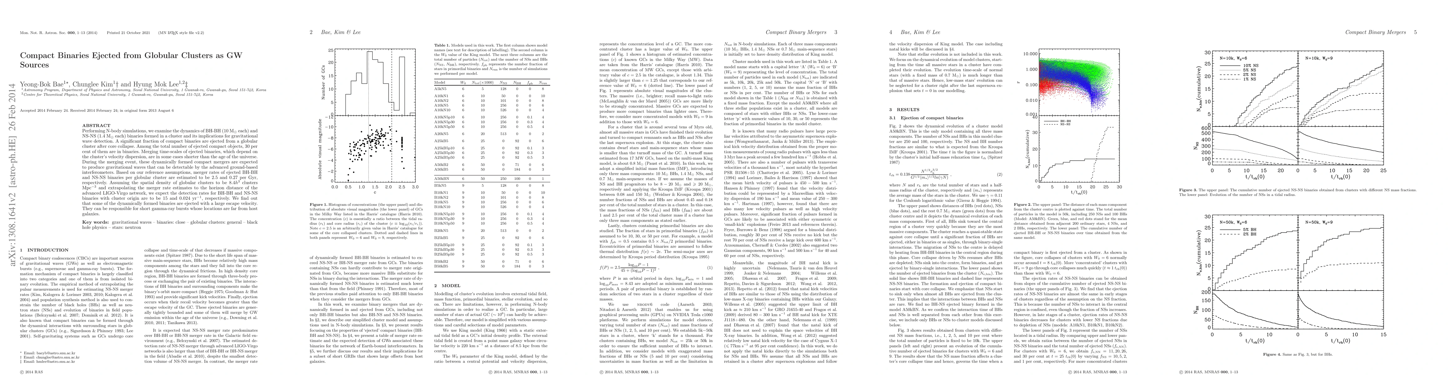 This study uses N-body simulations to explore the dynamics of compact binary systems (BH-BH and NS-NS) formed in globular clusters, finding that a significant fraction of these binaries are ejected post-core collapse. The research predicts detectable gravitational waves from merging ejected binaries, with estimated detection rates of 15 BH-BH mergers and 0.024 NS-NS mergers per year by advanced LIGO-Virgo.