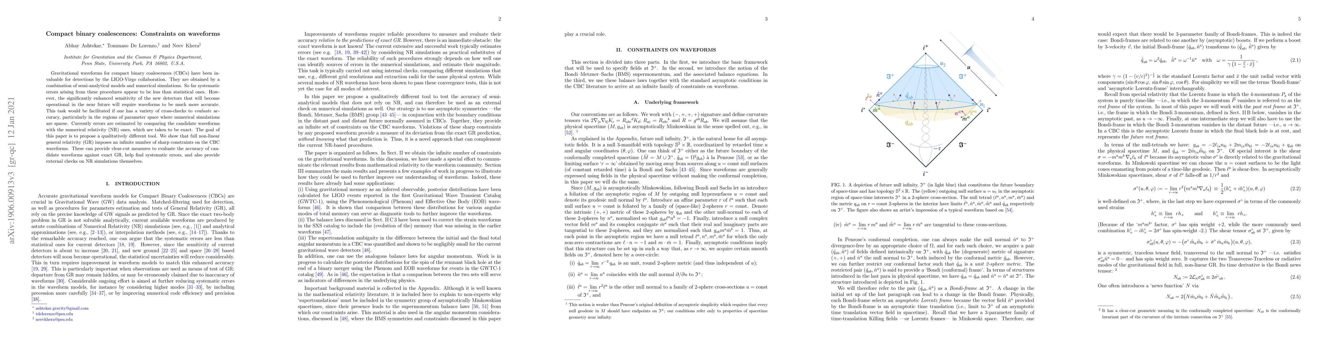 Gravitational waveforms for compact binary coalescences (CBCs) have been invaluable for detections by the LIGO-Virgo collaboration. They are obtained by a combination of semi-analytical models and numerical simulations. So far systematic errors arising from these procedures appear to be less than statistical ones. However, the significantly enhanced sensitivity of the new detectors that will become operational in the near future will require waveforms to be much more accurate. This task would be facilitated if one has a variety of cross-checks to \emph{evaluate} accuracy, particularly in the regions of parameter space where numerical simulations are sparse. Currently errors are estimated by comparing the candidate waveforms with the numerical relativity (NR) ones, which are taken to be exact. The goal of this paper is to propose a qualitatively different tool. We show that full non-linear general relativity (GR) imposes an infinite number of sharp constraints on the CBC waveforms. These can provide clear-cut measures to evaluate the accuracy of candidate waveforms against exact GR, help find systematic errors, and also provide external checks on NR simulations themselves.