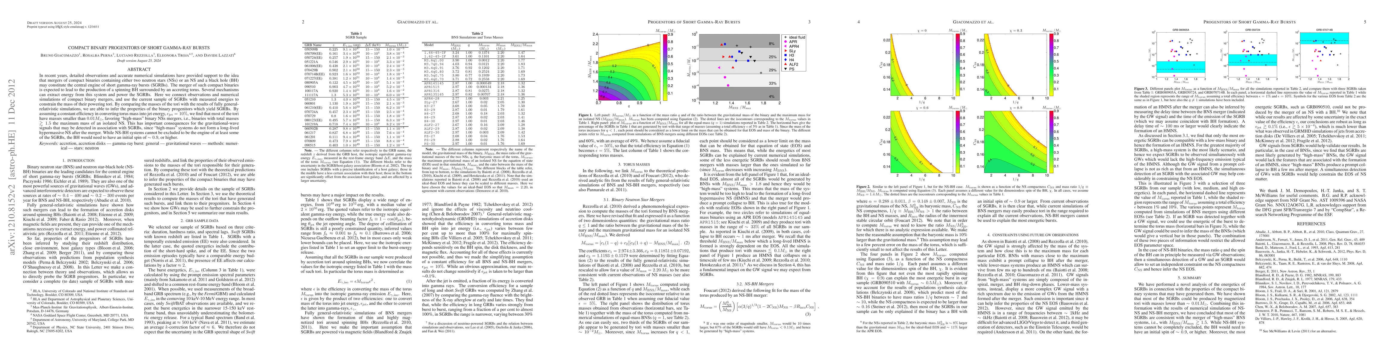 This paper connects observations and simulations to suggest that short gamma-ray bursts (SGRBs) likely originate from mergers of compact binary progenitors, specifically high-mass neutron star (NS) binaries, which produce spinning black holes with small torus masses (<0.01M_{sun}). The findings imply that such systems do not form long-lived hypermassive NSs, impacting potential gravitational-wave detections.