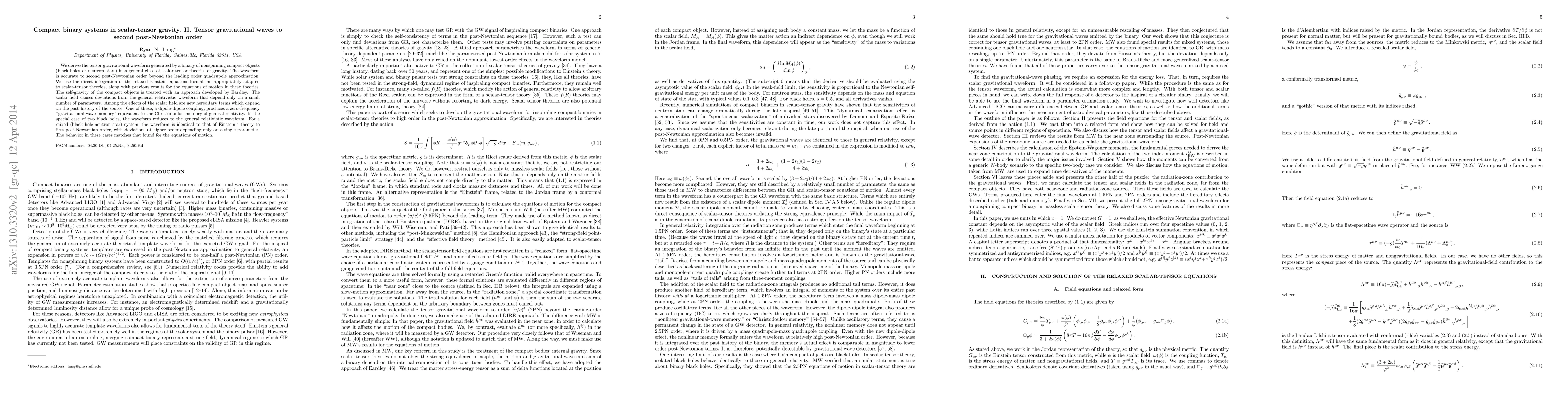 This paper derives the tensor gravitational waveform for compact binary systems in scalar-tensor gravity to second post-Newtonian order, revealing deviations from general relativity due to the scalar field, including a gravitational-wave memory effect. The waveform matches general relativity for black hole binaries and mixed systems at first post-Newtonian order, with higher-order deviations dependent on a single parameter.