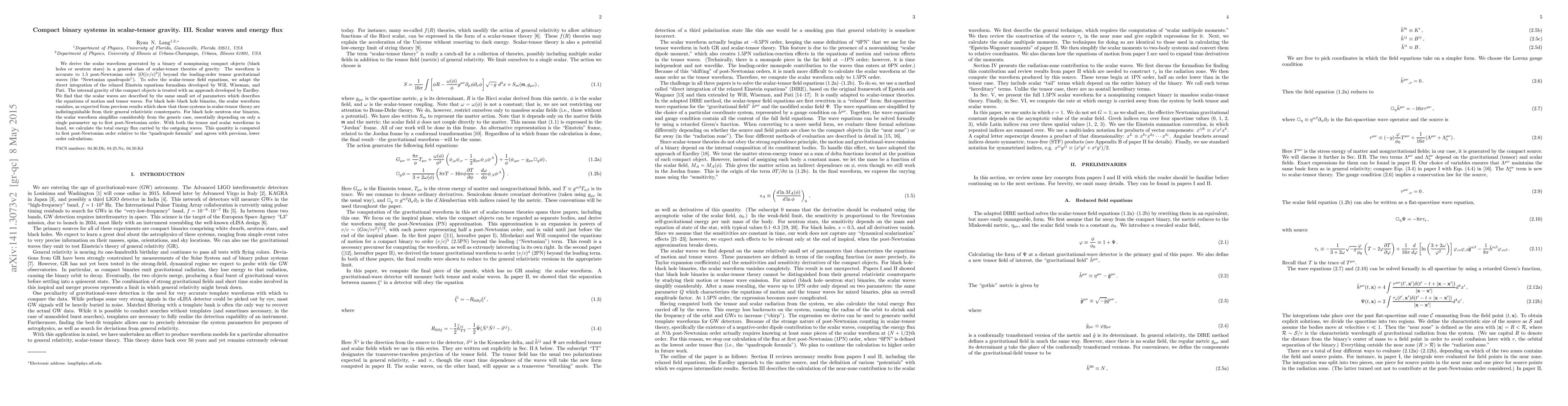 This paper derives the scalar waveform for nonspinning compact binary systems in scalar-tensor gravity, accurate to 1.5 post-Newtonian order. It finds that scalar waves depend on the same parameters as tensor waves and calculates the total energy flux carried by both scalar and tensor waves, agreeing with previous lower-order calculations.