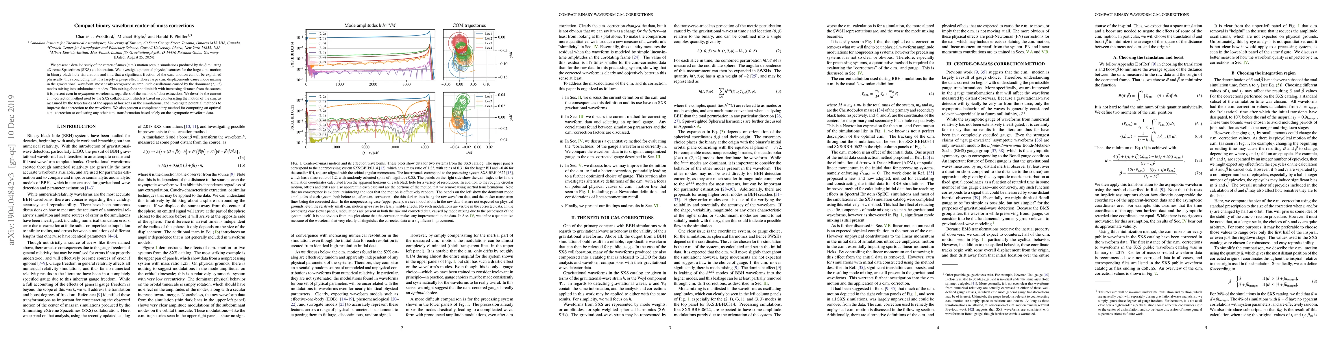 We present a detailed study of the center-of-mass (c.m.) motion seen in simulations produced by the Simulating eXtreme Spacetimes (SXS) collaboration. We investigate potential physical sources for the large c.m. motion in binary black hole simulations and find that a significant fraction of the c.m. motion cannot be explained physically, thus concluding that it is largely a gauge effect. These large c.m. displacements cause mode mixing in the gravitational waveform, most easily recognized as amplitude oscillations caused by the dominant (2,$\pm$2) modes mixing into subdominant modes. This mixing does not diminish with increasing distance from the source; it is present even in asymptotic waveforms, regardless of the method of data extraction. We describe the current c.m.-correction method used by the SXS collaboration, which is based on counteracting the motion of the c.m. as measured by the trajectories of the apparent horizons in the simulations, and investigate potential methods to improve that correction to the waveform. We also present a complementary method for computing an optimal c.m. correction or evaluating any other c.m. transformation based solely on the asymptotic waveform data.
