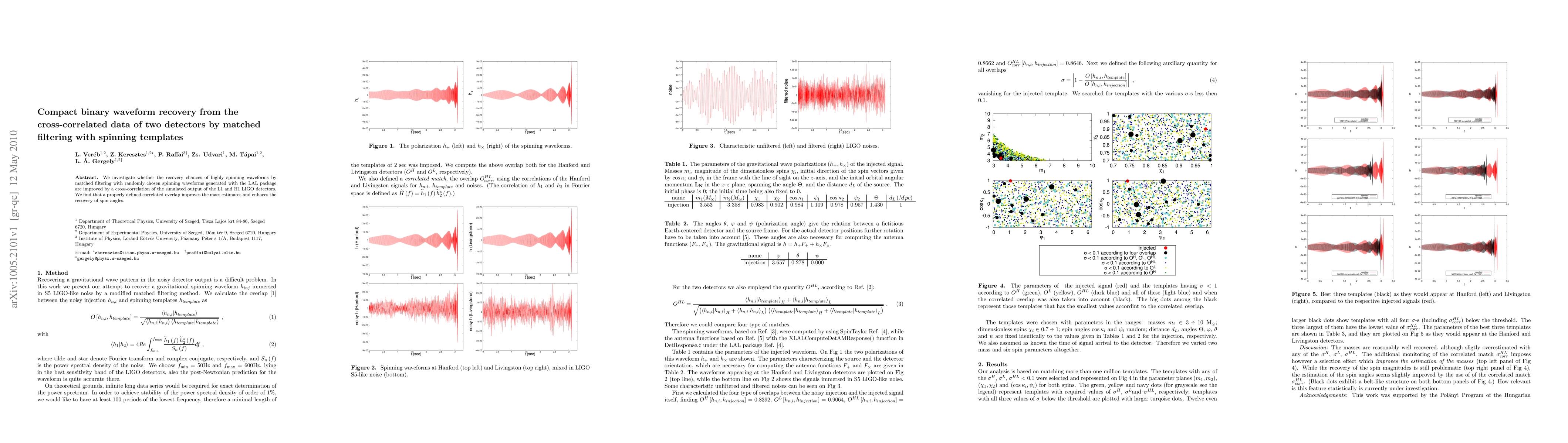 This study examines the effectiveness of matched filtering with spinning templates for recovering compact binary waveforms, finding that cross-correlation between data from LIGO detectors L1 and H1 improves mass estimates and enhances the recovery of spin angles.