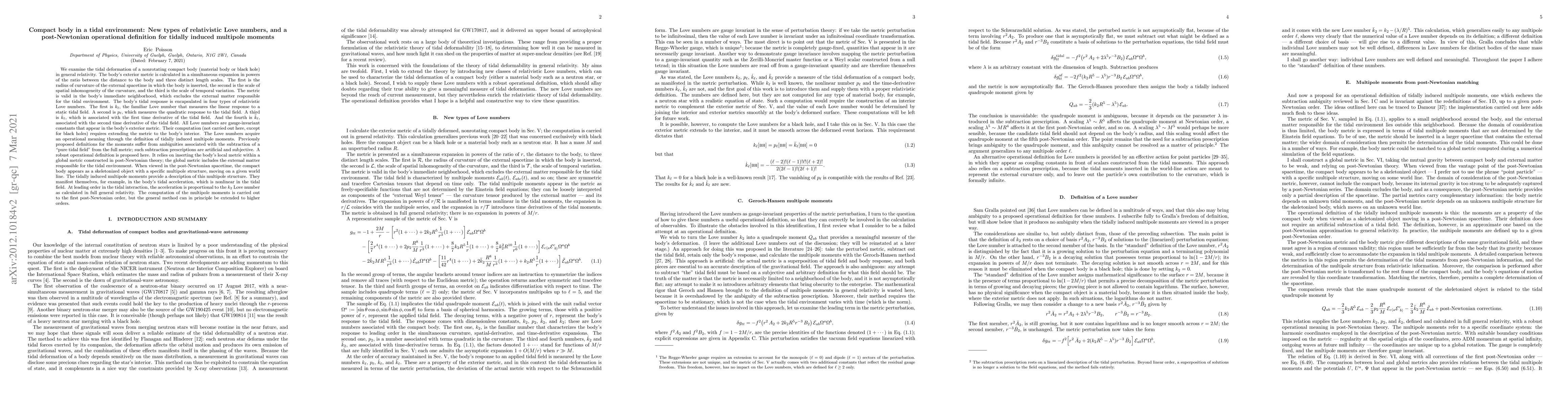 This paper investigates the tidal deformation of nonrotating compact bodies in general relativity, introducing four new types of relativistic Love numbers. It proposes a post-Newtonian operational definition for tidally induced multipole moments, resolving ambiguities in previous definitions and providing a robust framework for understanding the body's tidal response.
