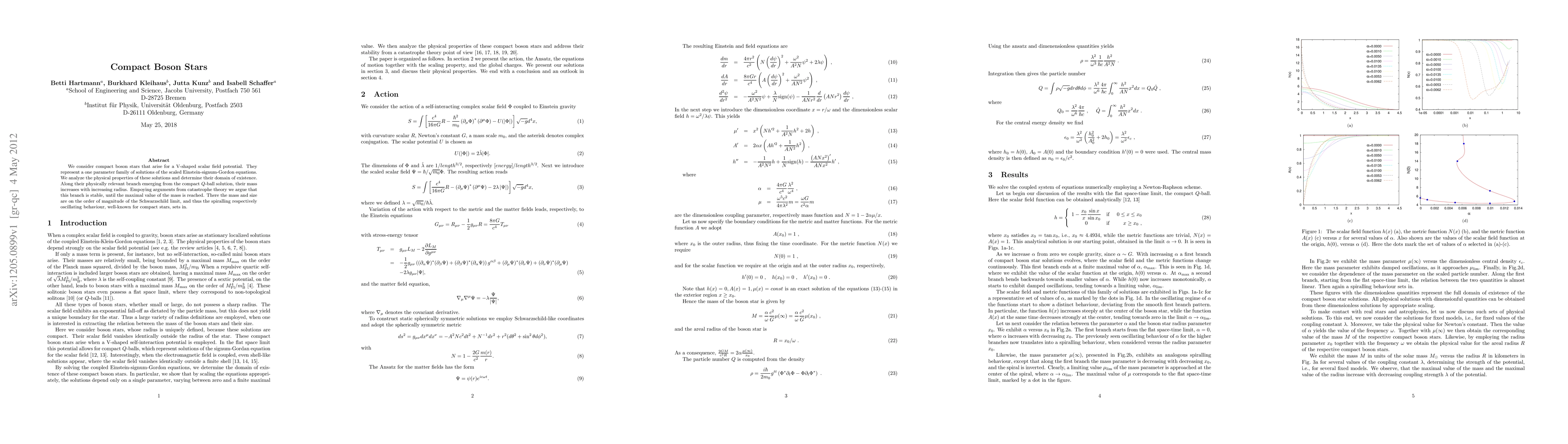 We consider compact boson stars that arise for a V-shaped scalar field potential. They represent a one parameter family of solutions of the scaled Einstein-signum-Gordon equations. We analyze the physical properties of these solutions and determine their domain of existence. Along their physically relevant branch emerging from the compact Q-ball solution, their mass increases with increasing radius. Empoying arguments from catastrophe theory we argue that this branch is stable, until the maximal value of the mass is reached. There the mass and size are on the order of magnitude of the Schwarzschild limit, and thus the spiralling respectively oscillating behaviour, well-known for compact stars, sets in.
