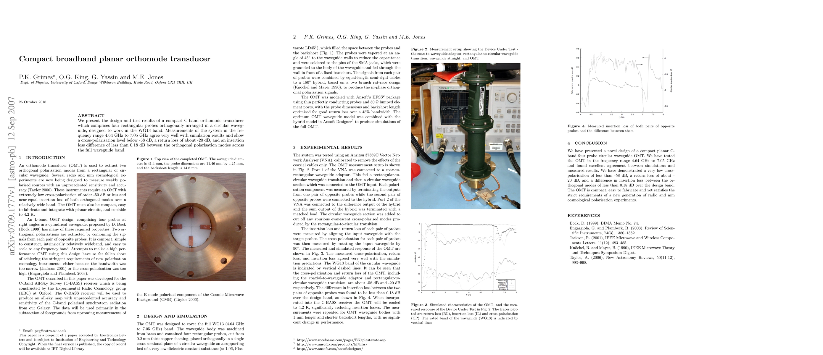 Researchers developed a compact C-band orthomode transducer with low cross-polarization levels and minimal insertion loss differences between polarisation modes.