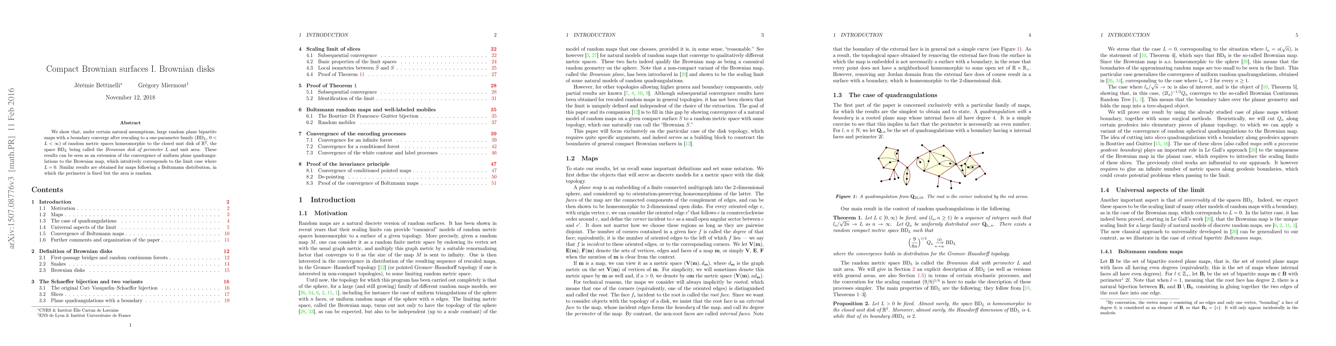 We show that, under certain natural assumptions, large random plane bipartite maps with a boundary converge after rescaling to a one-parameter family ($\mathrm{BD}_L$, $0 < L < \infty$) of random metric spaces homeomorphic to the closed unit disk of $\mathbb{R}^2$, the space $\mathrm{BD}_L$ being called the Brownian disk of perimeter $L$ and unit area. These results can be seen as an extension of the convergence of uniform plane quadrangulations to the Brownian map, which intuitively corresponds to the limit case where $L = 0$. Similar results are obtained for maps following a Boltzmann distribution, in which the perimeter is fixed but the area is random.