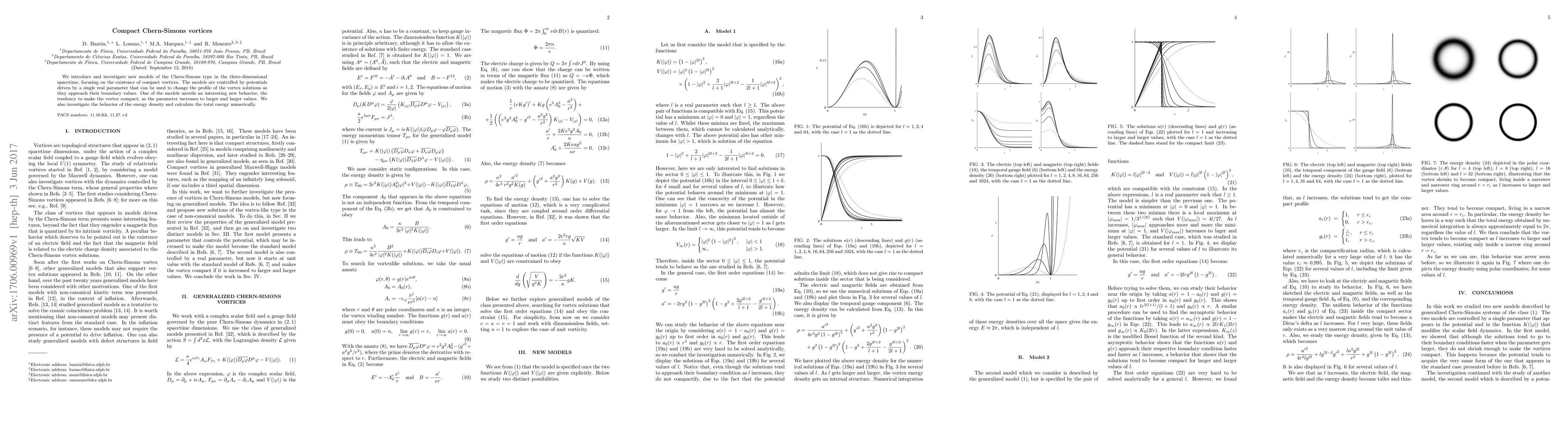 We introduce and investigate new models of the Chern-Simons type in the three-dimensional spacetime, focusing on the existence of compact vortices. The models are controlled by potentials driven by a single real parameter that can be used to change the profile of the vortex solutions as they approach their boundary values. One of the models unveils an interesting new behavior, the tendency to make the vortex compact, as the parameter increases to larger and larger values. We also investigate the behavior of the energy density and calculate the total energy numerically.