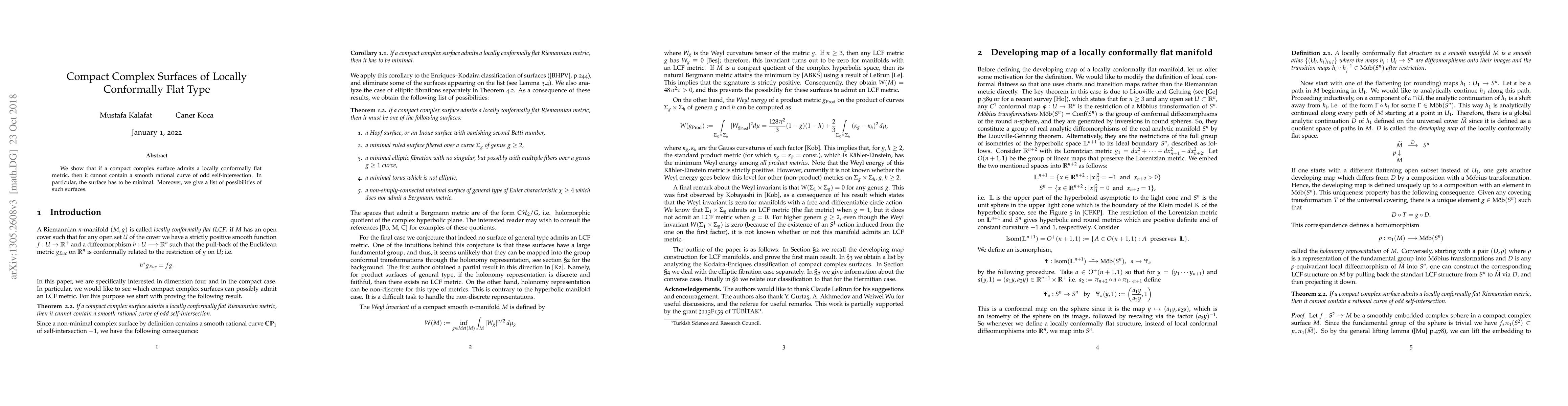 A compact complex surface with a locally conformally flat metric cannot contain smooth rational curves of odd self-intersection, implying it must be minimal, according to new research findings.