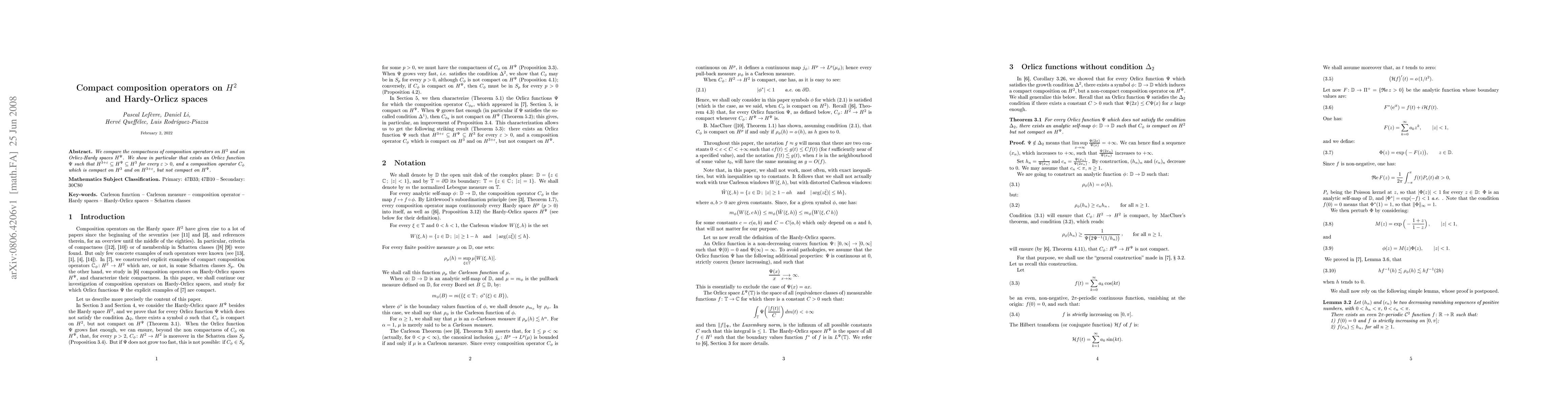 This paper investigates the compactness of composition operators on $H^2$ and Orlicz-Hardy spaces $H^\Psi$, demonstrating that while certain composition operators are compact on $H^3$ and $H^{3+\eps}$, they fail to be compact on a specific $H^\Psi$ space for a particular $\Psi$ function.