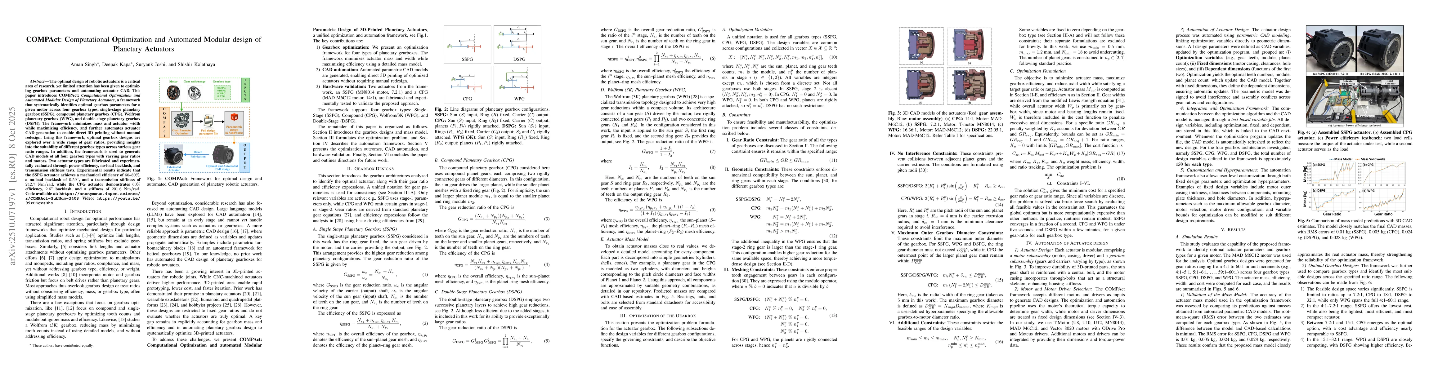 This work combines computational optimization with automated CAD for planetary actuator design, offering a modular approach that enables rapid prototyping and fabrication while maintaining mechanical performance characteristics.