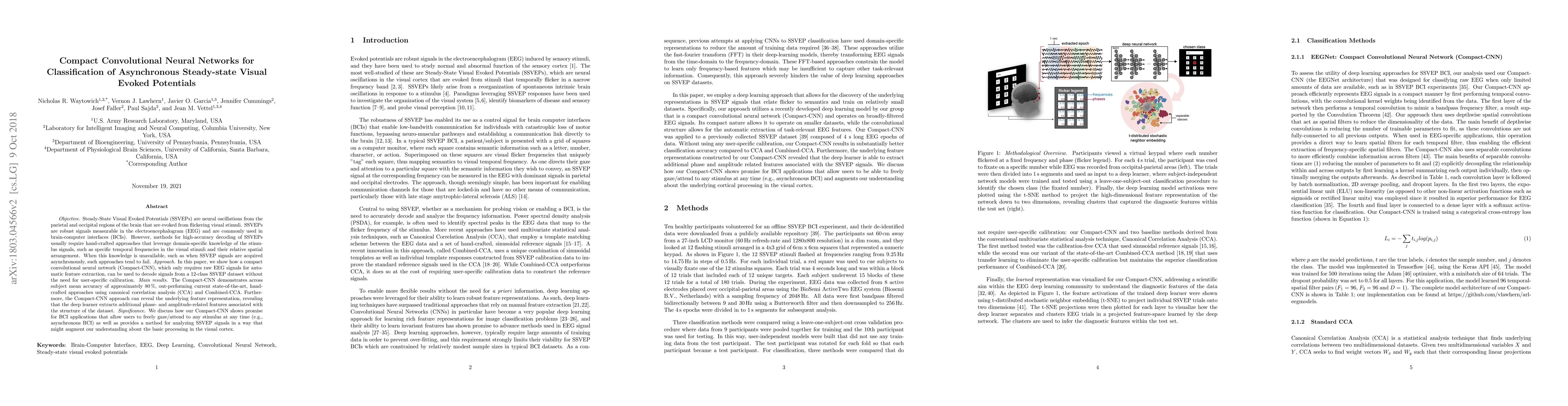 This paper proposes a compact convolutional neural network (Compact-CNN) for classifying asynchronous Steady-State Visual Evoked Potentials (SSVEPs) from EEG signals, achieving an 80% mean accuracy across subjects without domain-specific knowledge. The method outperforms traditional hand-crafted approaches and reveals additional phase and amplitude features, showing potential for asynchronous brain-computer interfaces.