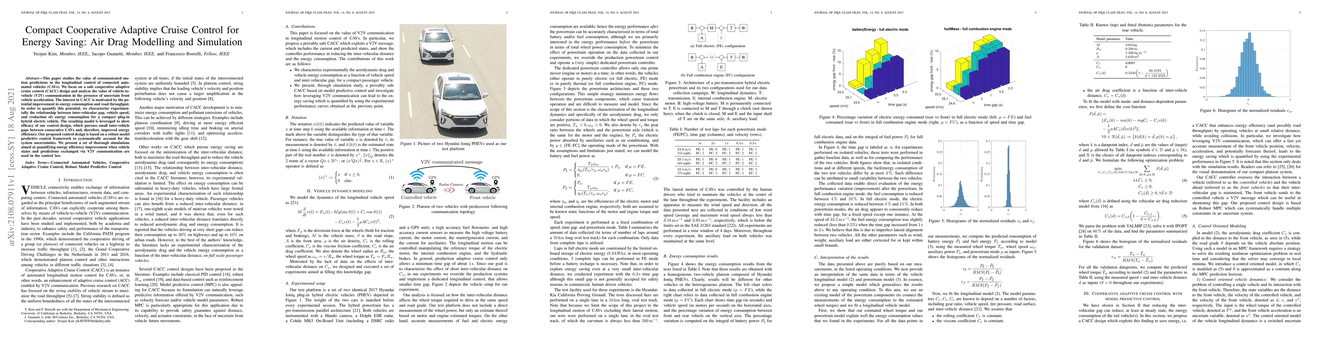 This paper proposes a cooperative adaptive cruise control (CACC) design for connected automated vehicles (CAVs) that leverages vehicle-to-vehicle (V2V) communication to enhance energy efficiency. The study uses a robust model predictive control framework to optimize inter-vehicle gaps, demonstrating significant energy savings through simulations.