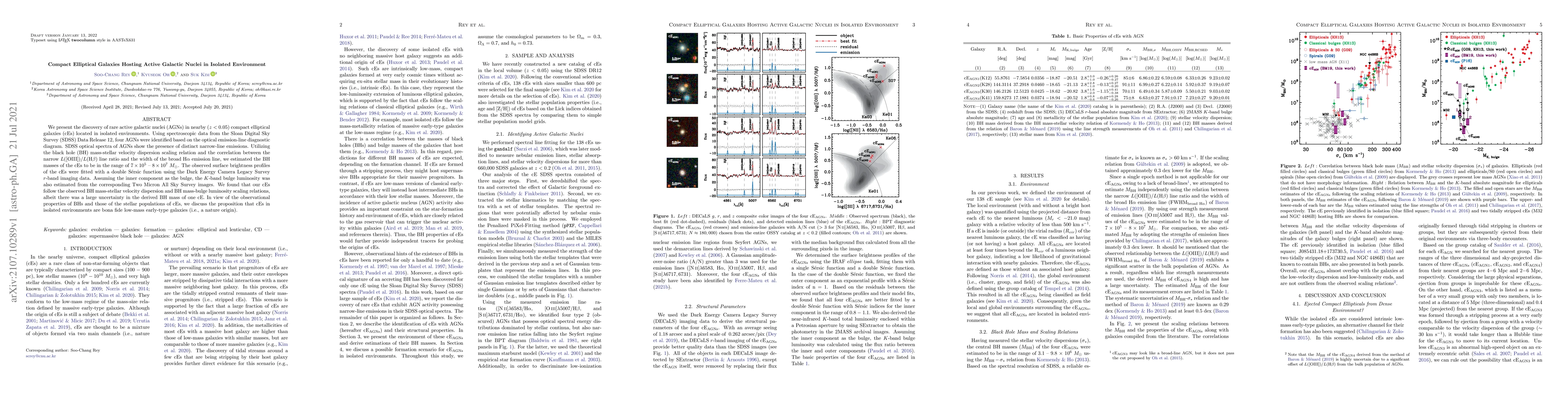 Researchers discovered four active galactic nuclei in compact elliptical galaxies in isolated environments, with estimated black hole masses ranging from 7x10^5 to 8x10^7 Msun.