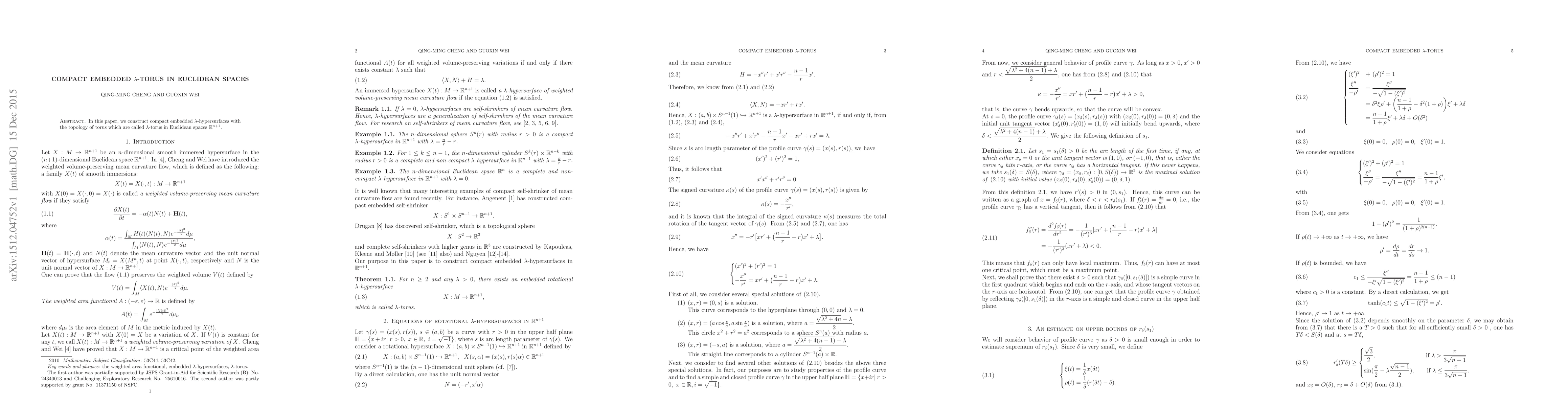 Summary: This paper constructs compact embedded $\lambda$-hypersurfaces with the topology of a torus, termed $\lambda$-torus, within Euclidean spaces $\mathbb{R}^{n+1}$. The focus is on the geometric and topological properties of these $\lambda$-tori.