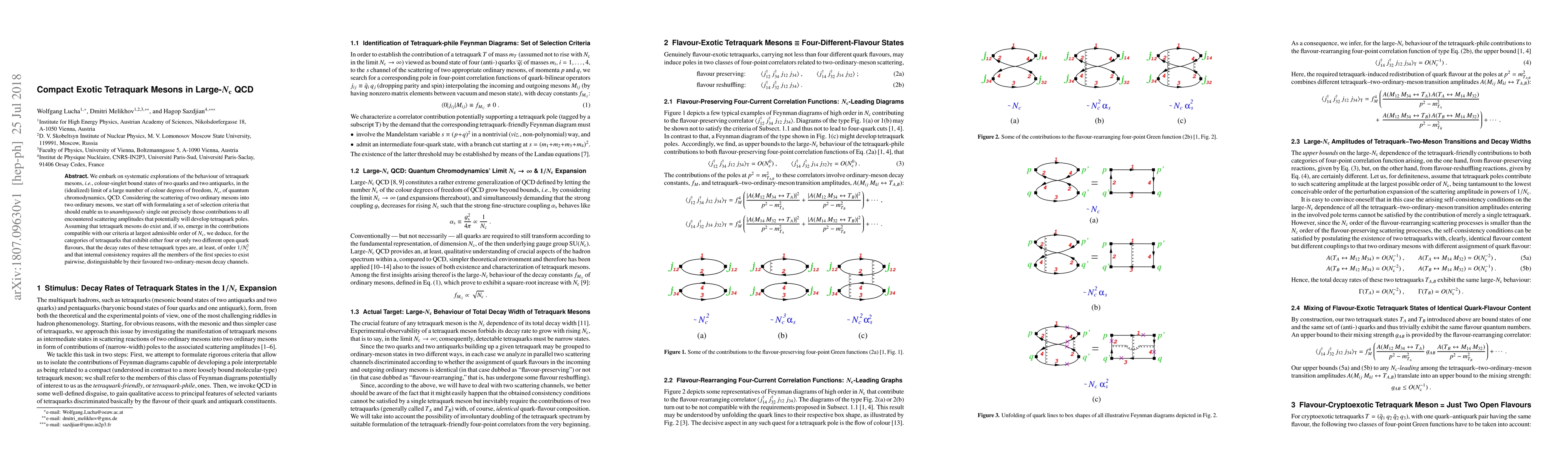 This paper investigates tetraquark mesons in the large-$N_c$ limit of QCD, identifying selection criteria for their scattering amplitudes. The study finds that tetraquarks with four or two different quark flavors decay at rates of order $1/N_c^2$, necessitating the existence of distinguishable pairs for the former type.