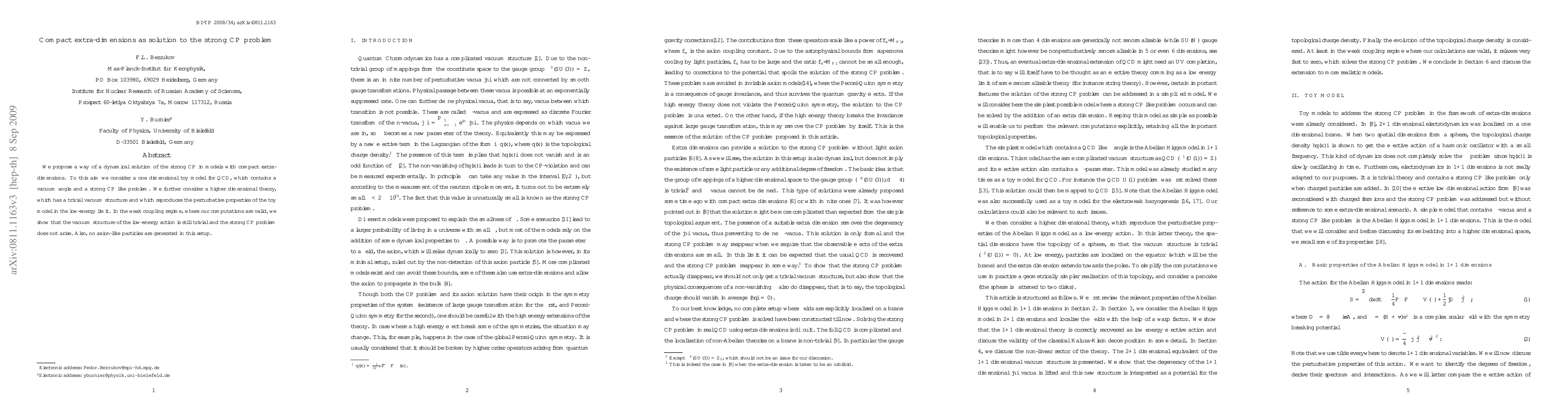 This research proposes a solution to the strong CP problem in QCD by introducing compact extra-dimensions. Using a toy model with a vacuum angle, it demonstrates that a higher dimensional theory with a trivial vacuum structure can reproduce QCD's low-energy properties and solve the strong CP problem without requiring an axion-like particle, thus avoiding astrophysical bounds.