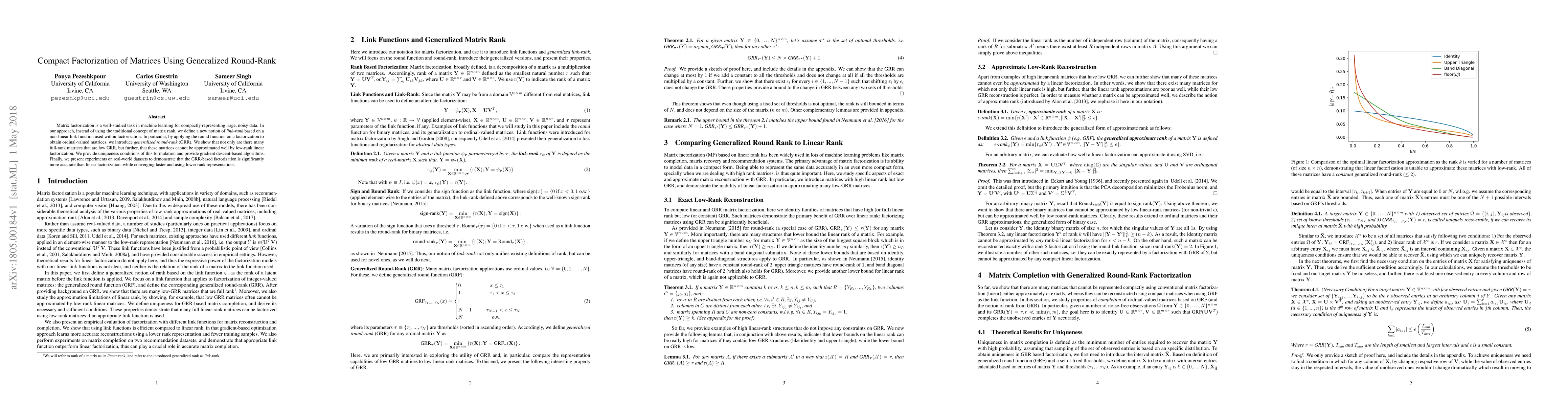 Matrix factorization is a well-studied task in machine learning for compactly representing large, noisy data. In our approach, instead of using the traditional concept of matrix rank, we define a new notion of link-rank based on a non-linear link function used within factorization. In particular, by applying the round function on a factorization to obtain ordinal-valued matrices, we introduce generalized round-rank (GRR). We show that not only are there many full-rank matrices that are low GRR, but further, that these matrices cannot be approximated well by low-rank linear factorization. We provide uniqueness conditions of this formulation and provide gradient descent-based algorithms. Finally, we present experiments on real-world datasets to demonstrate that the GRR-based factorization is significantly more accurate than linear factorization, while converging faster and using lower rank representations.