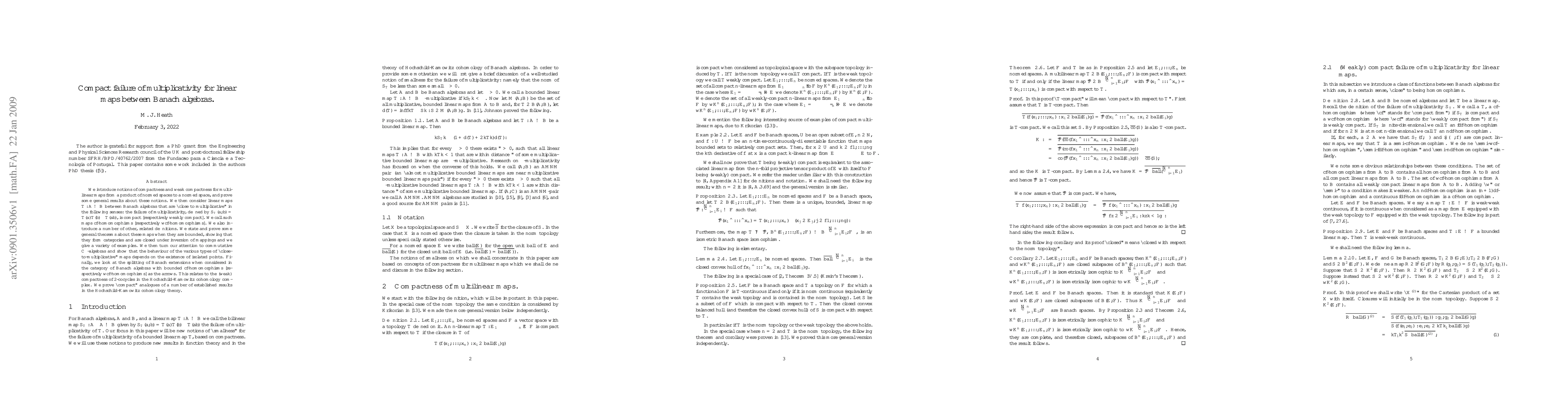 This paper explores compact failure of multiplicativity for linear maps between Banach algebras, introducing notions of compactness and weak compactness and proving general results about these concepts, with implications for categories and cohomology theory.