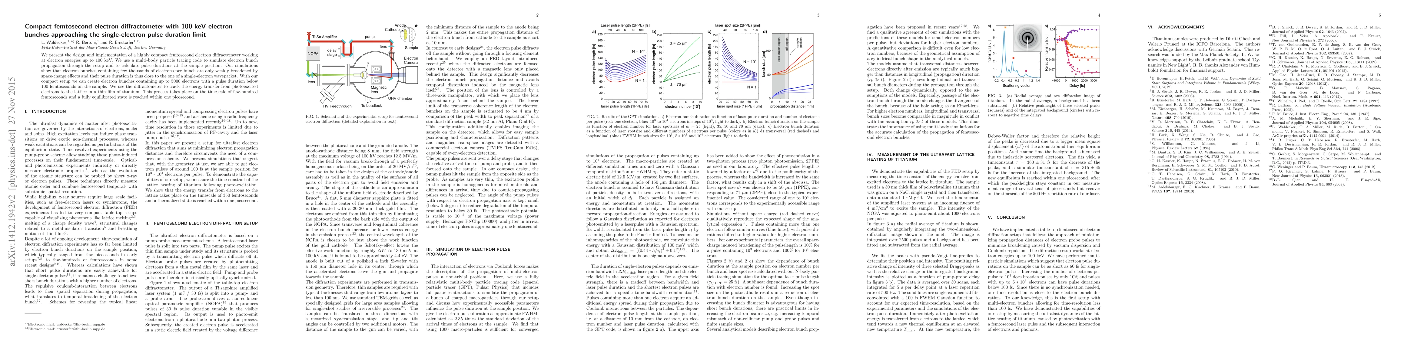 This paper details the design of a compact femtosecond electron diffractometer operating at 100 keV, achieving electron pulse durations near the single-electron limit. The study uses simulations to demonstrate that electron bunches with up to 5000 electrons maintain short pulse durations, enabling the investigation of femtosecond energy transfer processes in titanium thin films.