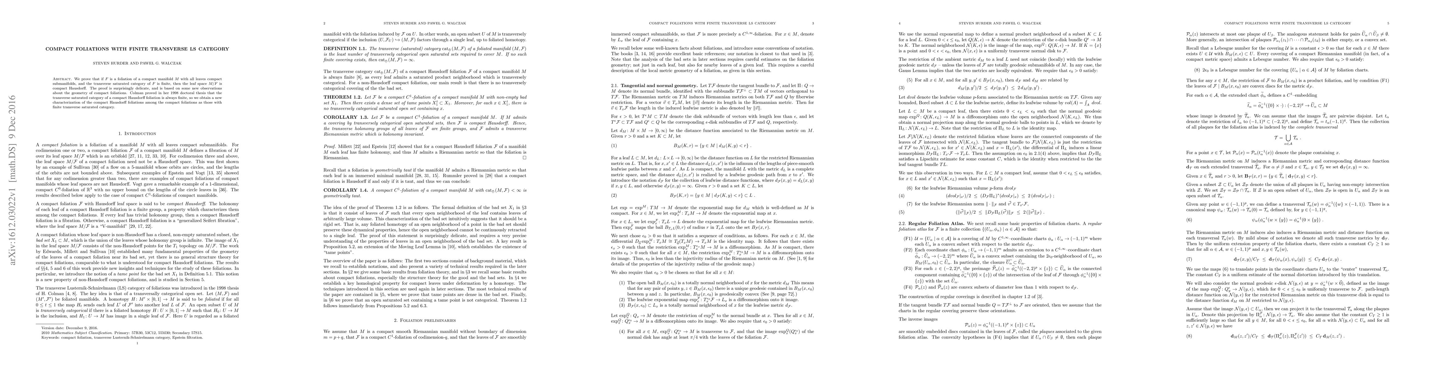 We prove that if F is a foliation of a compact manifold M with all leaves compact submanifolds, and the transverse saturated category of F is finite, then the leaf space M/F is compact Hausdorff. The proof is surprisingly delicate, and is based on some new observations about the geometry of compact foliations. Colman proved in her 1998 doctoral thesis that the transverse saturated category of a compact Hausdorff foliation is always finite, so we obtain a new characterization of the compact Hausdorff foliations among the compact foliations as those with finite transverse saturated category.