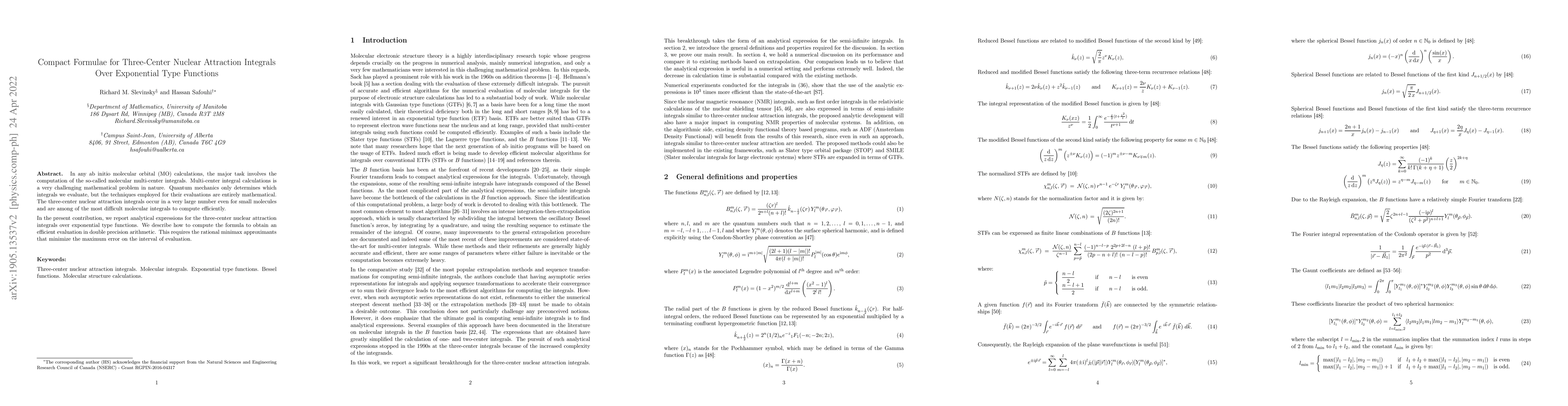 In any ab initio molecular orbital (MO) calculations, the major task involves the computation of the so-called molecular multi-center integrals. Multi-center integral calculations is a very challenging mathematical problem in nature. Quantum mechanics only determines which integrals we evaluate, but the techniques employed for their evaluations are entirely mathematical. The three-center nuclear attraction integrals occur in a very large number even for small molecules and are among of the most difficult molecular integrals to compute efficiently to a high pre-determined accuracy. In the present contribution, we report analytical expressions for the three-center nuclear attraction integrals over exponential type functions. We describe how to compute the formula to obtain an efficient evaluation in double precision arithmetic. This requires the rational minimax approximants that minimize the maximum error on the interval of evaluation. The numerical tests show a substantial gain in efficiency over the state-of-the-art.