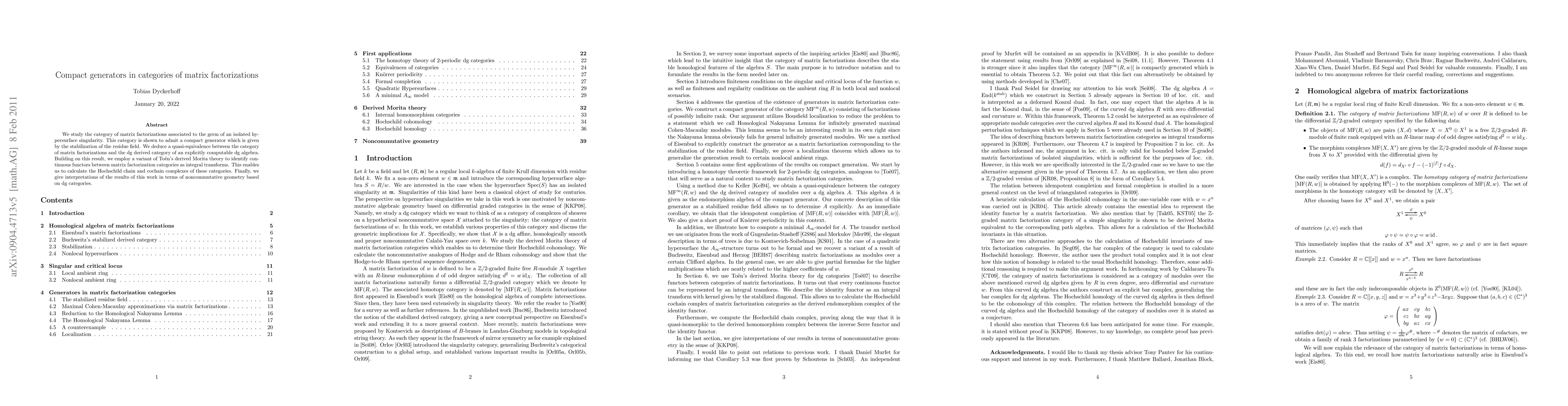 This paper identifies a compact generator in the category of matrix factorizations for isolated hypersurface singularities and establishes a quasi-equivalence with the dg derived category of a computable dg algebra, using derived Morita theory to analyze continuous functors and compute Hochschild complexes, ultimately relating these findings to noncommutative geometry.