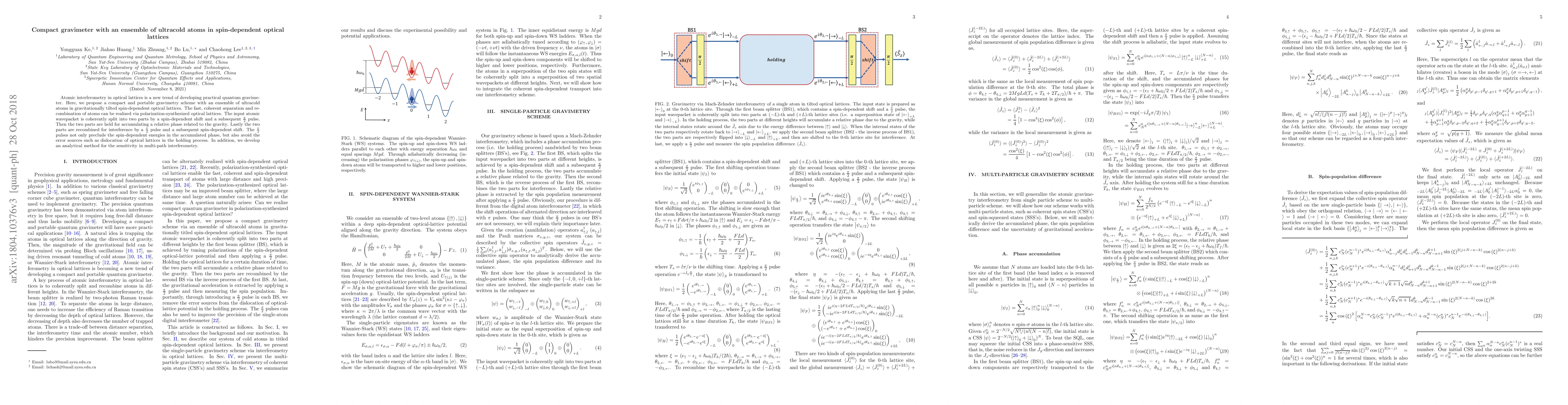 This paper proposes a compact gravimeter using ultracold atoms in spin-dependent optical lattices, employing atomic interferometry for precise gravity measurements. The scheme includes coherent atom splitting and recombination via $\frac{\pi}{2}$ pulses, minimizing errors from optical lattice dislocations and enhancing sensitivity.