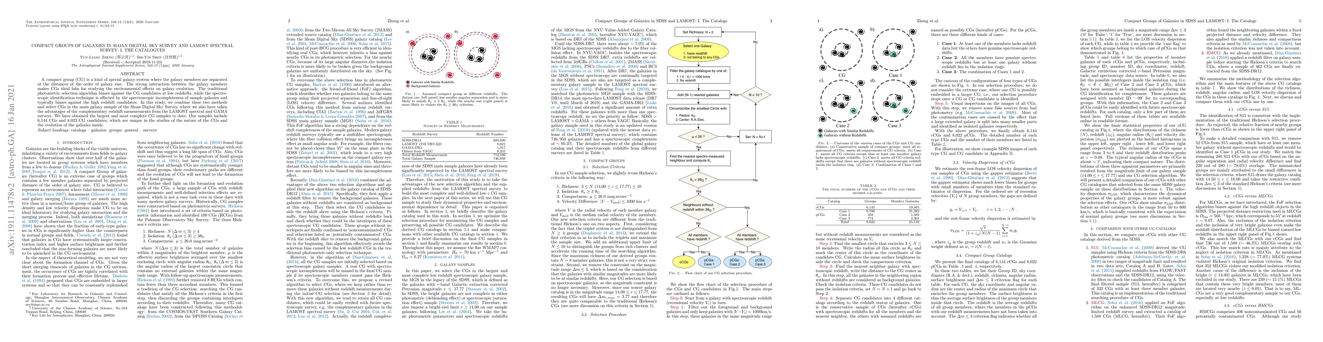 A compact group (CG) is a kind of special galaxy system where the galaxy members are separated at the distances of the order of galaxy size. The strong interaction between the galaxy members makes CGs ideal labs for studying the environmental effects on galaxy evolution. The traditional photometric selection algorithm biases against the CG candidates at low redshifts, while the spectroscopic identification technique is affected by the spectroscopic incompleteness of sample galaxies and typically biases against the high redshift candidates. In this study, we combine these two methods and select CGs in the main galaxy sample of the Sloan Digital Sky Survey, where we also have taken the advantages of the complementary redshift measurements from the LAMOST spectral and GAMA surveys. We have obtained the largest and most complete CG samples to date. Our samples include 6,144 CGs and 8,022 CG candidates, which are unique in the studies of the nature of the CGs and the evolution of the galaxies inside.