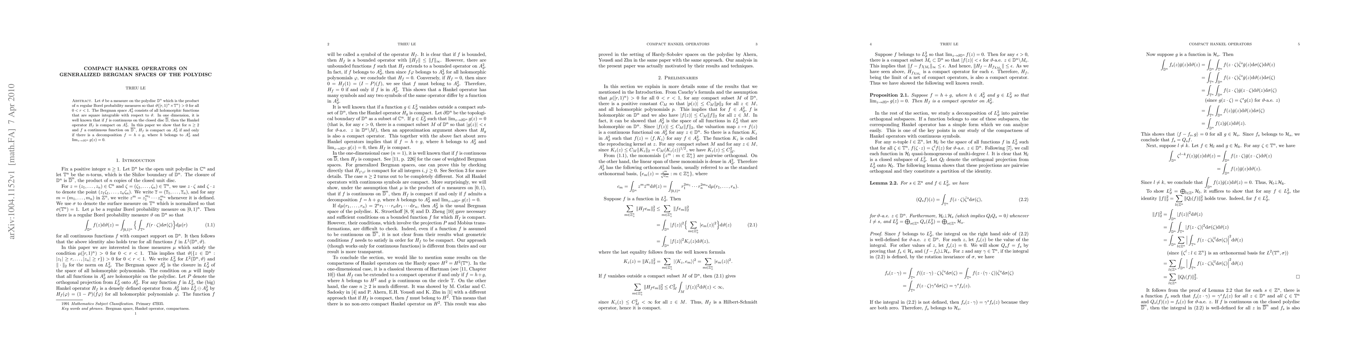 We show that for $f$ a continuous function on the closed polydisc $\bar{\mathbb{D}^n}$ with $n\geq 2$, the Hankel operator $H_{f}$ is compact on the Bergman space of $\mathbb{D}^n$ if and only if there is a decomposition $f=h+g$, where $h$ is in the ball algebra and $g$ vanishes on the boundary of the polydisc.
