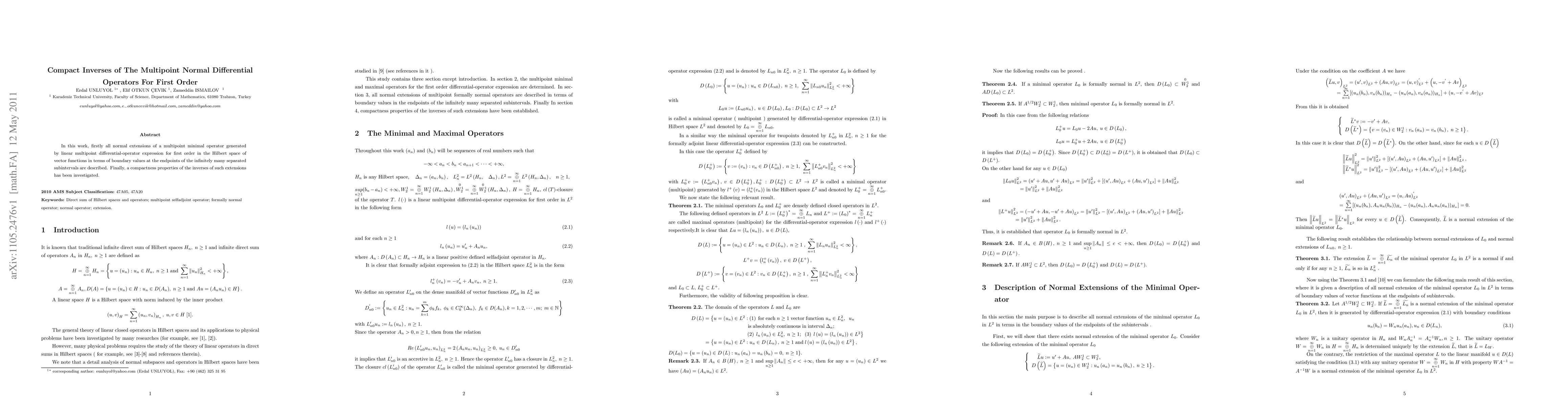 This research describes normal extensions of first-order multipoint minimal operators in a Hilbert space, focusing on boundary values across infinitely many subintervals, and investigates the compactness properties of the inverses of these extensions.