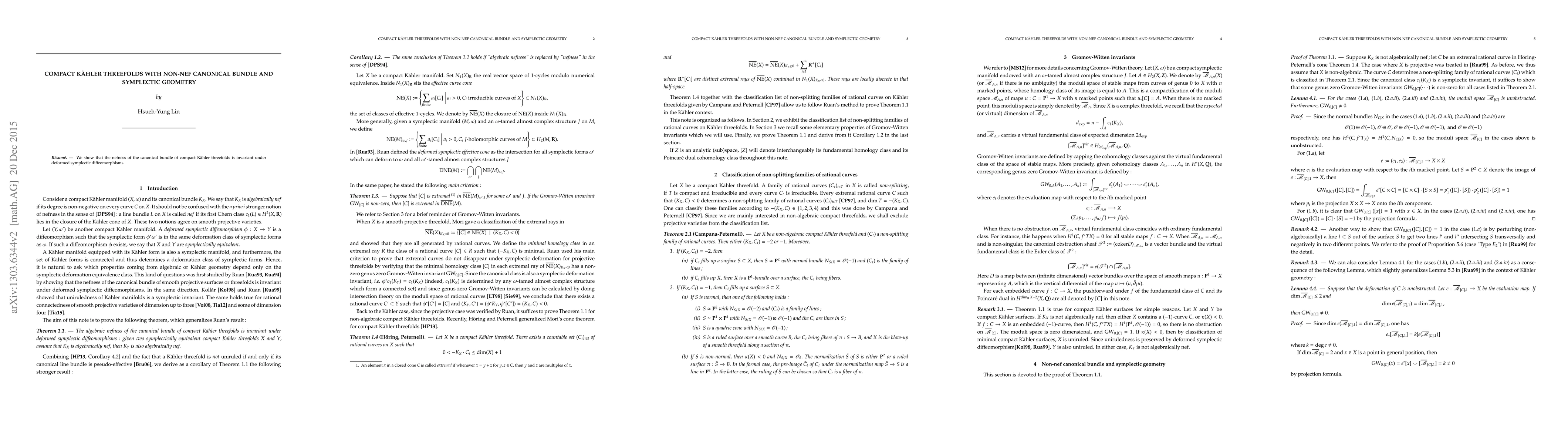 Summary: This paper demonstrates that the nefness of the canonical bundle in compact Kähler threefolds remains unchanged under deformed symplectic diffeomorphisms, despite the presence of a non-nef canonical bundle. It highlights the interplay between symplectic geometry and the canonical bundle's properties.