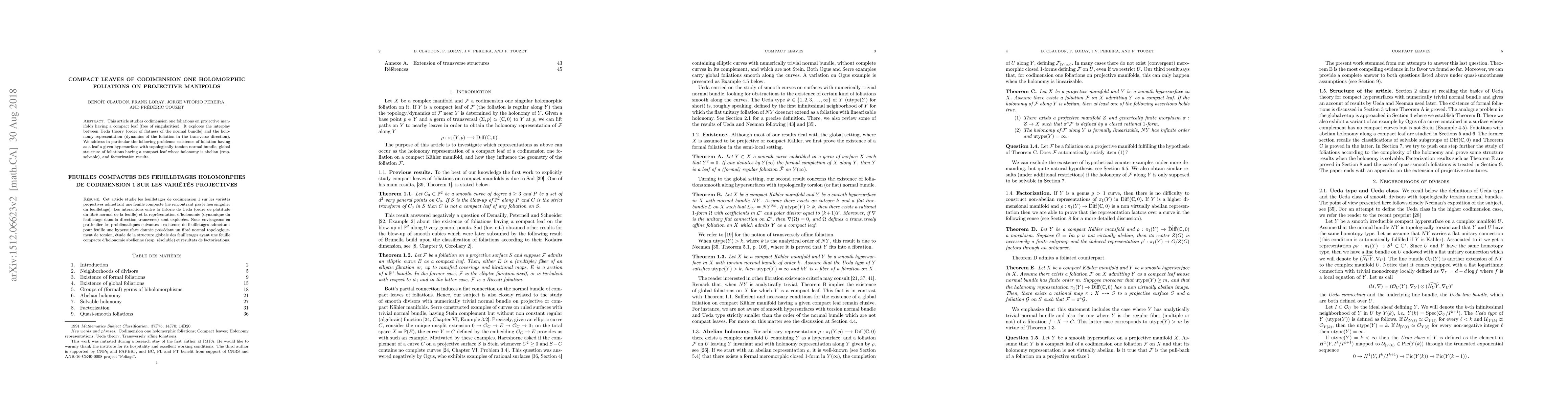 This paper investigates codimension one foliations on projective manifolds with compact leaves, focusing on Ueda theory and holonomic dynamics. It addresses the existence of such foliations with specific topological properties and explores their global structure and factorization results.