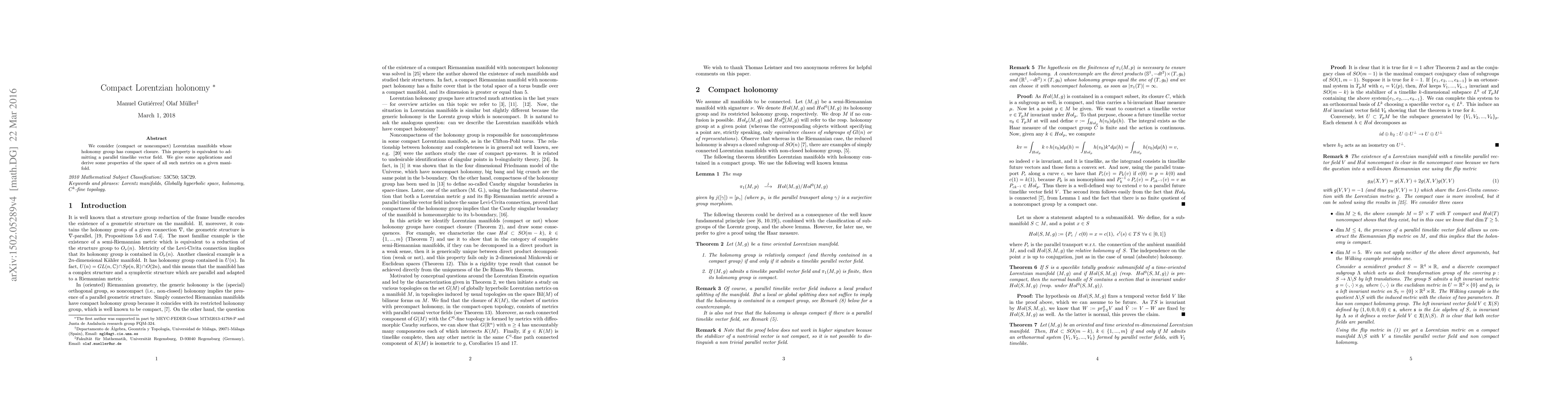 This paper investigates Lorentzian manifolds with compact holonomy group closures, proving that such manifolds admit a parallel timelike vector field. It also explores properties of the space of metrics on a given manifold that exhibit this holonomy property.