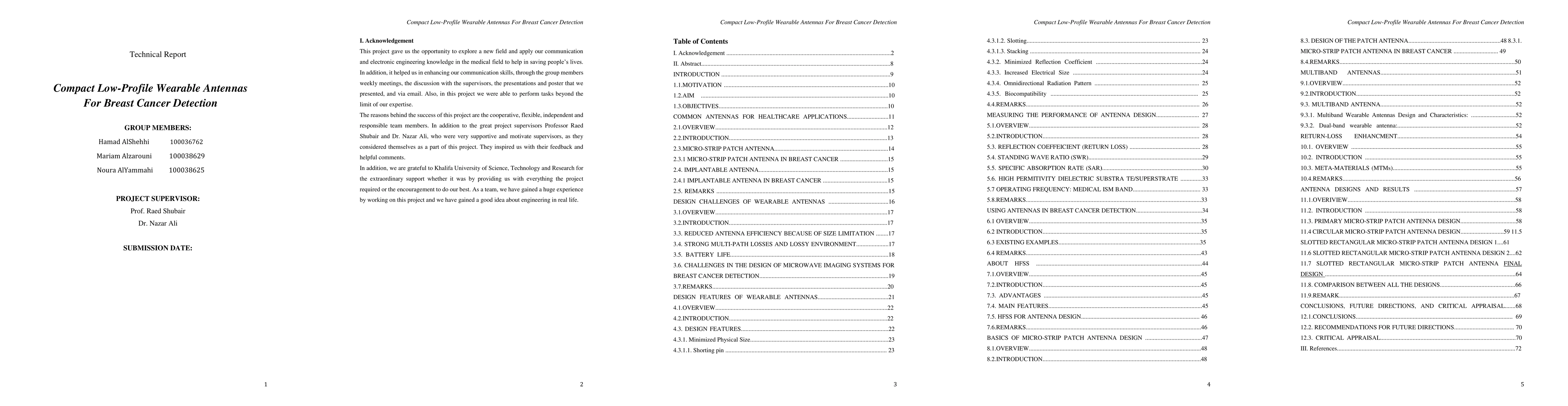 Many lives can be saved if tumors are detected in early stages, which can result in a bigger chance for recovery. Many patients find it irritating to get regular checkups due to the fact that the majority of the monitoring systems are complicated, not available everywhere and not mobile. Furthermore, for medical field applications, micro-strip antennas are efficient and have flexible properties that are utilized in imaging, diagnosis and treatment. It is known that breast cancer is the most common type of cancer in the world, and the earlier its been detected the better. In the early stages of breast cancer, getting rid of from the tumors is much easier and more guaranteed. Nowadays, the main method that is used in the hospitals for breast cancer detection is the Ultra-Wideband method (UWB). However, Many patients find it irritating to get regular check ups due to the fact that the majority of the monitoring systems are complicated and not mobile.