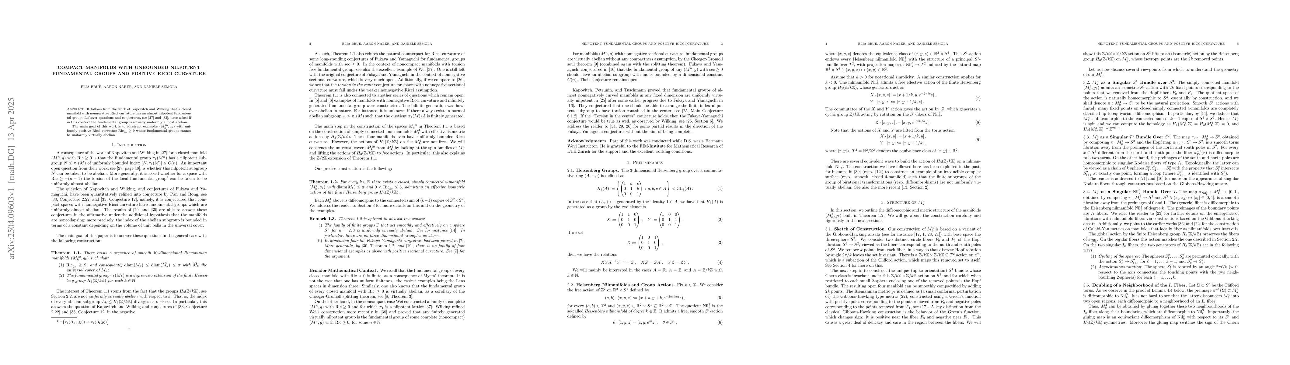 The paper introduces a detailed construction method for manifolds with specified Ricci curvature properties and unbounded nilpotent fundamental groups, using advanced techniques from differential geometry and group theory.