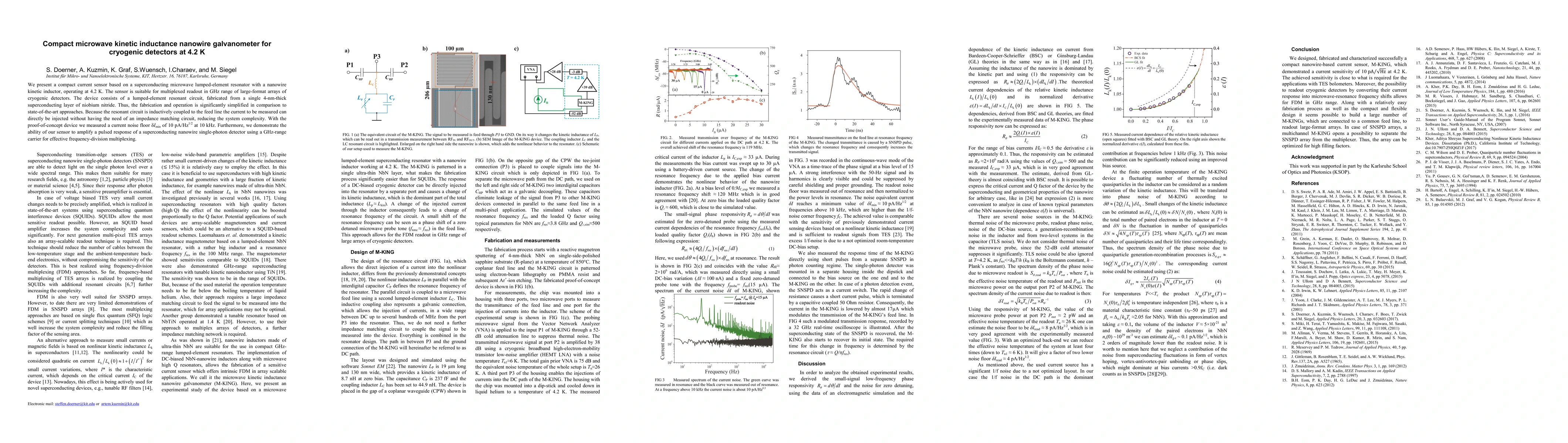 Researchers developed a compact microwave sensor using superconducting nanowires for cryogenic detectors, achieving a low noise floor of 10 pA/Hz1/2 at 10 kHz.