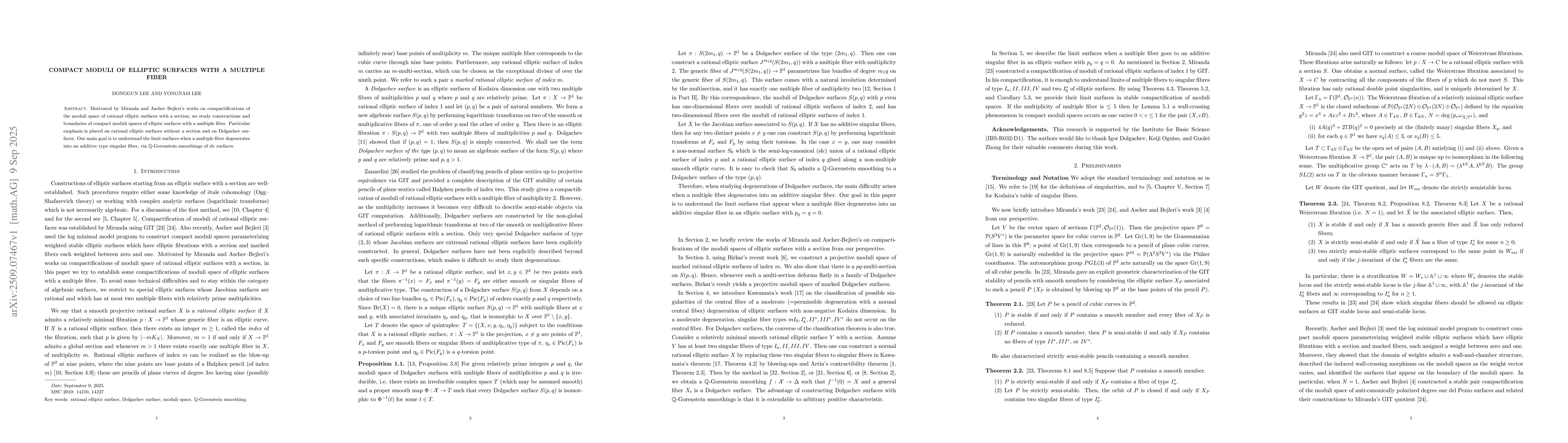Motivated by Miranda and Ascher--Bejleri's works on compactifications of the moduli space of rational elliptic surfaces with a section, we study constructions and boundaries of compact moduli spaces of elliptic surfaces with a multiple fiber. Particular emphasis is placed on rational elliptic surfaces without a section and on Dolgachev surfaces. Our main goal is to understand the limit surfaces when a multiple fiber degenerates into an additive type singular fiber, via $\mathbb{Q}$-Gorenstein smoothings of slc surfaces.